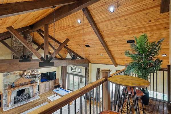 - Built-In Wine Cooler, Cable TV Available, Cathedral Ceiling(s), Central Vacuum, Chandelier, Decorative Lighting, Double Vanity, Eat-In Kitchen, Flat Screen Wiring, Granite Counters, High Speed Internet Available, In-Law Suite Floorplan, Kitchen Island, Loft, Natural Woodwork, Open Floorplan, Pantry, Smart Home System, Sound System Wiring, Walk-In Closet(s), Wet Bar