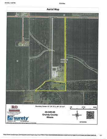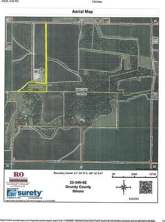 Three miles West of Morris on Rt 6,then North three miles on Nettle School Rd, then West ( Left ) 3/4 mile on Hoge Rd. Entrance on the left adjacent to the tree line. Look for the real estate sign. No improved driveway.