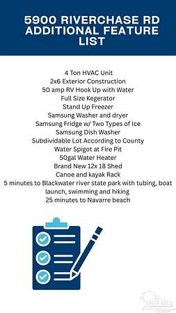 Going East on Hwy 90 from Downtown Milton go 9.9 miles and turn right on Bluff Rd, go .4 miles and take sharp left on Blue Barnes Rd, go 1.6 miles and turn right on Riverchase Rd, 5900 is about .8 miles on your left.
