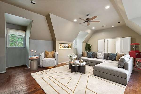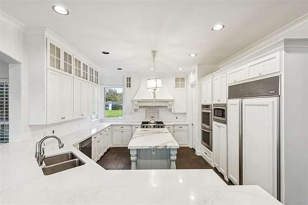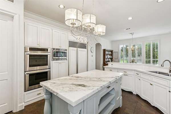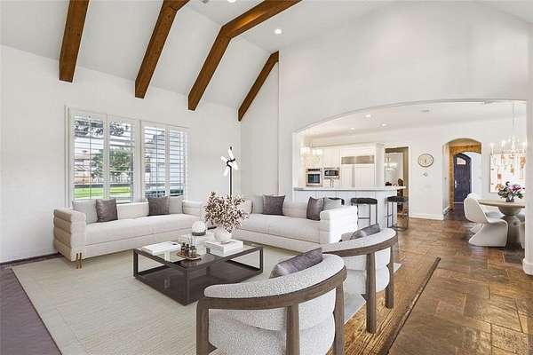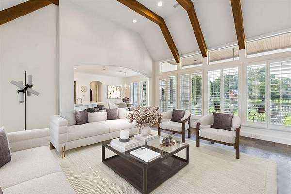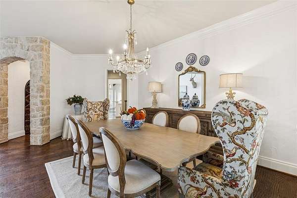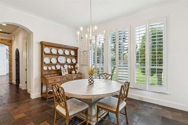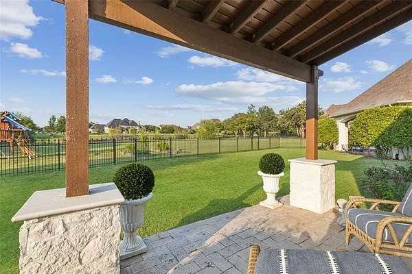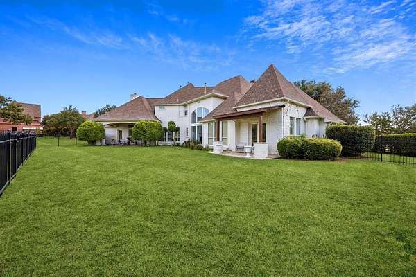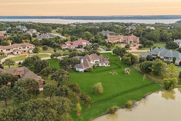 Tucked away in the prestigious gated community of The Landing, this exquisitely maintained estate rests on a private, tree-lined 2-acre lot with sweeping views of a stocked pond, your own serene countryside escape just minutes from Lake Grapevine. From the moment you arrive, the circular driveway and grand wooden entry doors set the tone for timeless elegance. Inside, soaring ceilings, floor-to-ceiling windows, and an abundance of natural light highlight the home's refined finishes and thoughtful updates. Designed for both everyday living and upscale entertaining, the residence features a gourmet kitchen with custom white cabinetry, a built-in refrigerator, double ovens, and striking marble and quartz 2-inch countertops. Hand-scraped hardwood floors run throughout all bedrooms and main living areas, complemented by a wine cellar, walk-in pantry, and generous storage throughout. The guest suite includes private exterior access, perfect for visitors or multigenerational living, while the elegant primary retreat offers a sitting area with a dual-sided fireplace, a spa-like bath, an oversized walk-in closet with built-ins, and direct access to the backyard. Additional spaces include a game or media room, formal dining, home office, and multiple living areas, all connected by two staircases that enhance both functionality and style. Smart home upgrades such as a radiant barrier, whole-house surge protector, new air ducts, and a high-efficiency sprinkler system add modern convenience and energy efficiency. Outdoors, the expansive backyard, extending to the middle of the tranquil pond--offers endless possibilities to create your dream outdoor oasis, whether you envision a resort-style pool, outdoor kitchen, or peaceful garden retreat. With its rare blend of privacy, elegance, and modern comfort, this Holmes-built masterpiece offers the ultimate in luxury living. Schedule your private tour and experience the magic of The Landing lifestyle.