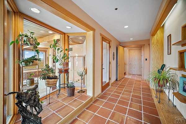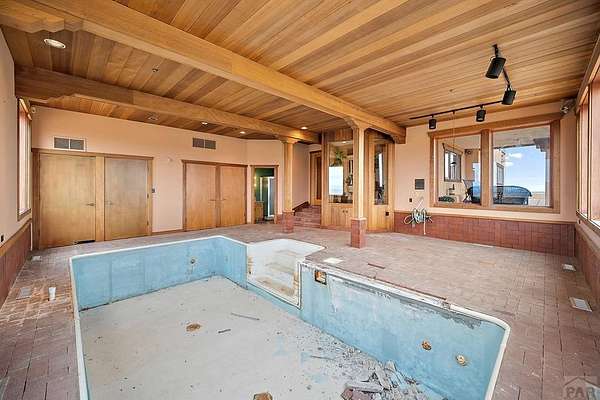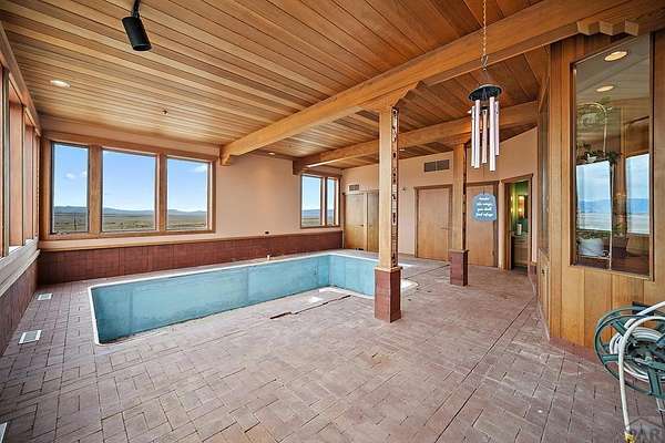 Iconic Pueblo estate on 35 acres, sitting atop the highest point of 2,600 acres-the legendary Jackson Ranch. Built in 1985 with no expense spared, this crown jewel of Pueblo spans 5,300+ sq ft, featuring 5 bedrooms, 4 bathrooms, an indoor pool, elevator, and large executive office, all with breathtaking 360 views. Walls of windows let you soak in the surrounding beauty for hours. Forty years later, it still stands strong, showcasing craftsmanship from an era that's hard to match-oak beams, doors, and trim throughout, wide hallways and doorways, and a commercial elevator for easy accessibility. Old-school charm is everywhere: custom chandeliers, sconces, ceiling fans, a huge laundry room with chute, one-of-a-kind sinks and soaking tubs, and his-and-her bathrooms in the giant master suite. Upstairs guest suites feature a private enclosed porch with a brand-new ADA Jack & Jill bathroom and zero-entry shower. The large kitchen includes an enclosed porch and serving window to the wet bar and living room under a soaring tongue-and-groove ceiling. The pool needs work or could be converted into a recreation room. Some updates like carpet replacement are needed-but with vision and investment, this property could more than double in value. Whether you're looking for a family compound, corporate retreat, or income-generating AirBnB (already approved), this estate is opportunity personified! Owner occupied property.