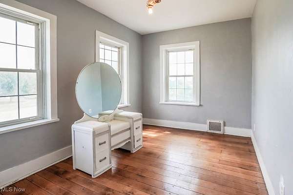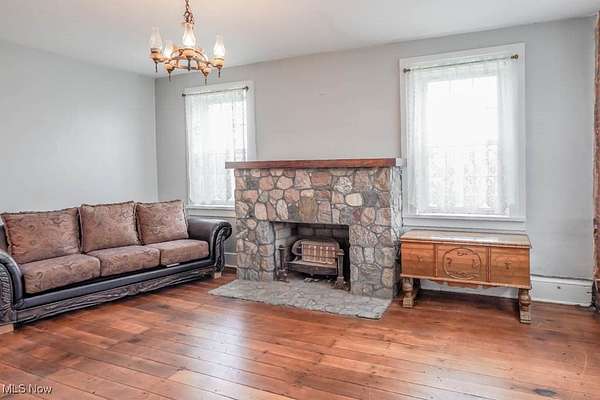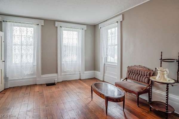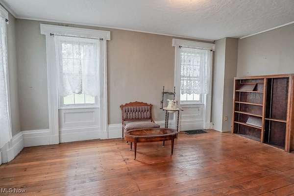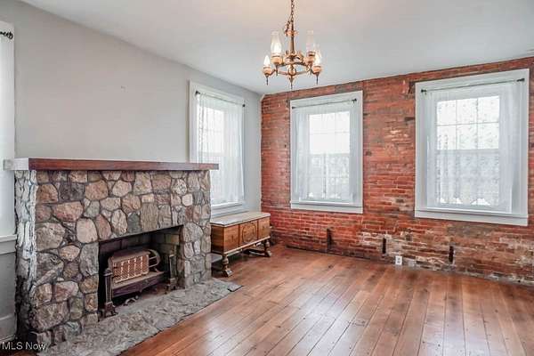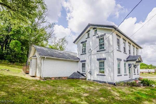 With 13 acres of land, this property is a rare investment opportunity offering options for farming, livestock, recreation, or future development!Zoning is currently R1 and can possibly be approved for R2. Home with less acreage(1-2) is also listed in MLS#5160893 for $299,900. Set on the acreage is the Peter Pontius House, believed to be one of the oldest homes in the county, built in 1835. The Federal style farmhouse spans 2604 square feet and blends historic character with modern updates. Hardwood floors, wide moldings, and exposed brick accent walls highlight its timeless appeal, while improvements include a newer roof, electric panel, hot water tank, water supply lines, deck, and sidewalks. Inside, the living room centers around a stone fireplace, with a front den or parlor that adds space for work or relaxation. A massive dining area flows into the hearth room with its wood burning fireplace and built in bookcase. The kitchen offers a tile countertop, tin ceiling, and good cabinet storage, with a butler's pantry that doubles as a mudroom. The family room stands out with a vaulted beamed ceiling, built in desk, wall of closets, and French doors opening to a huge back deck. A half bath completes the main level, while upstairs you'll find two bedrooms and a full bath with a step in shower. The true value here lies in the land. Thirteen acres with this kind of versatility allows you to secure acreage now and decide how you want to use it, whether as income-producing farmland, recreational space, or simply holding it as a smart investment in an appreciating market. Large parcels like this are becoming increasingly difficult to find, so call to schedule a tour today!