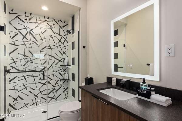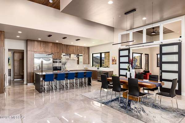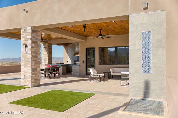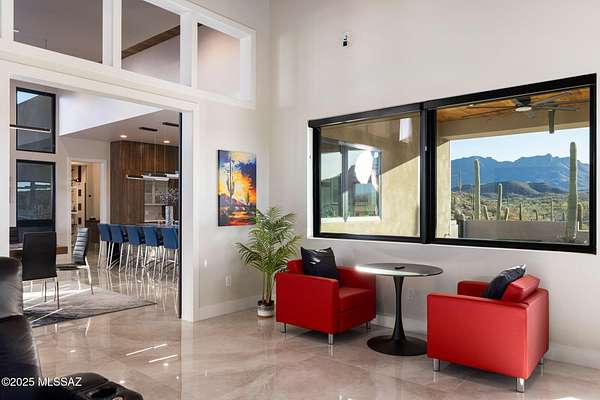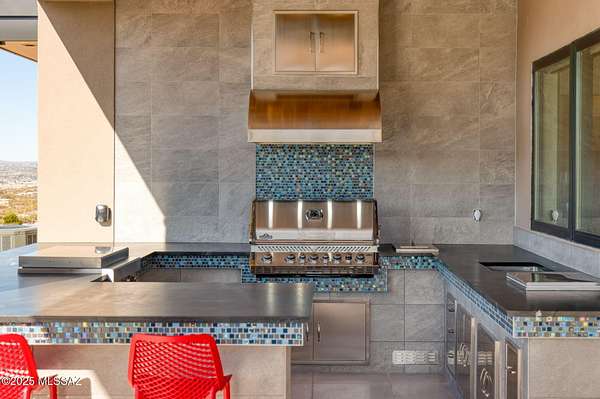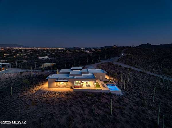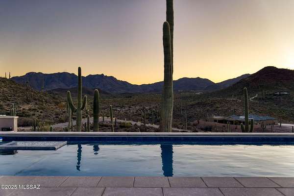 Seller is a Midwest Architect & Builder who specializes in designing and building high end homes. This property showcases his skills and workmanship. Perched in one of Tucson's most coveted gated communities, this stunning ultra-contemporary residence redefines year-round luxury living. A striking cantilevered porch entry and bold architectural lines introduce the home's meticulously curated design, setting the tone for the sweeping east-facing views of iconic mountain ranges and striking modern architecture that set this home apart. Set on a premium lot surrounded by towering saguaros, the home captures unending vistas-sunrises that awaken the mountains, city lights that twinkle at dusk, and sunsets that paint the sky with vibrant color. Thoughtfully designed, this custom home offers over 3,400 square feet of refined indoor living, featuring 4 bedrooms, polished marble flooring, and a show-stopping ceiling-to-floor stone fireplace with a modern linear gas fireplace. A gourmet kitchen and dining area provide the ideal space for unforgettable culinary experiences, inside, opulence meets functionality in the oversized commercial-grade equipped chef's kitchen adorned with top-of-the-line stainless steel appliances, a black leather island, a Sub-Zero refrigerator, artisan tile, and lighting. The private primary suite is a retreat, complete with a modern linear gas fireplace, built in tv, freestanding soaking tub, black leather-accented double vanities, and cutting-edge glass and tile. The indoor-outdoor connection is unparalleled, with a 4 car garage, expansive deck, stone deck accented with steel featuring a built-in-BBQ, outdoor kitchen, spa, lap pool with a retractable pool cover, wood plank ceilings with fans, and modern tile work. and fire pit set up to create a true retreat for relaxing or entertaining. This stunning custom residence embodies a statement of modern desert living, reimagined with style, vision, and timeless appeal.