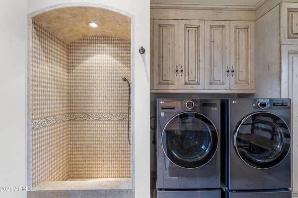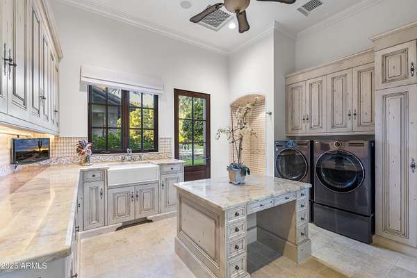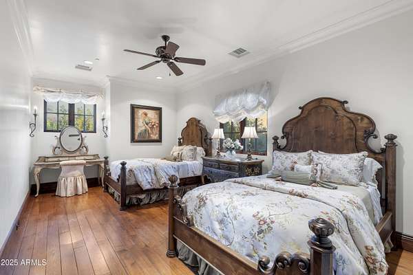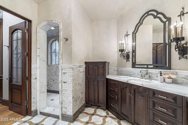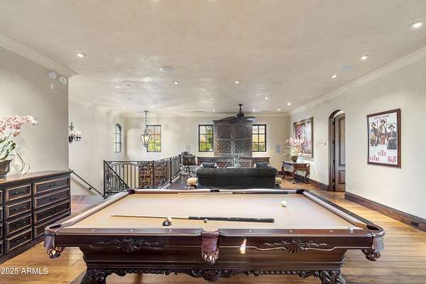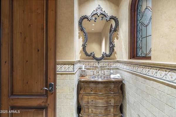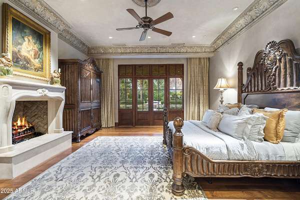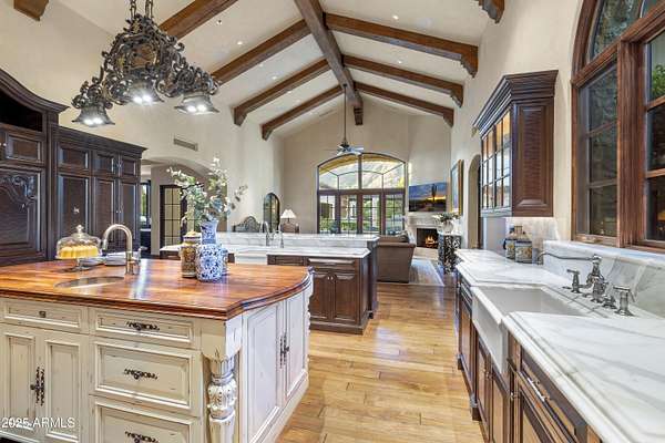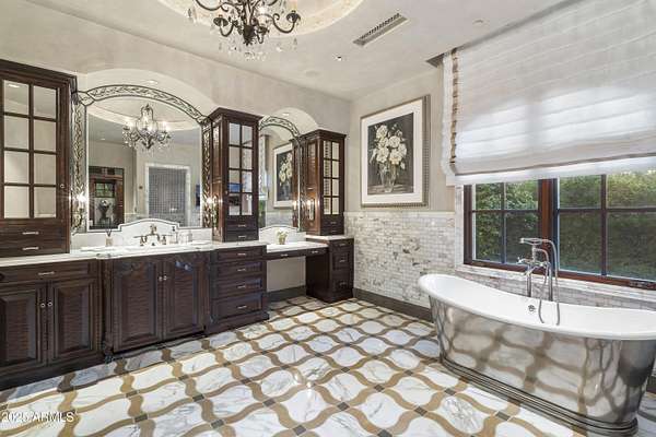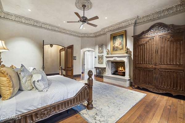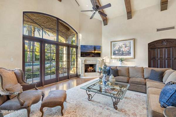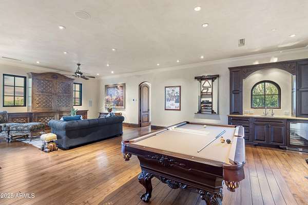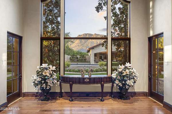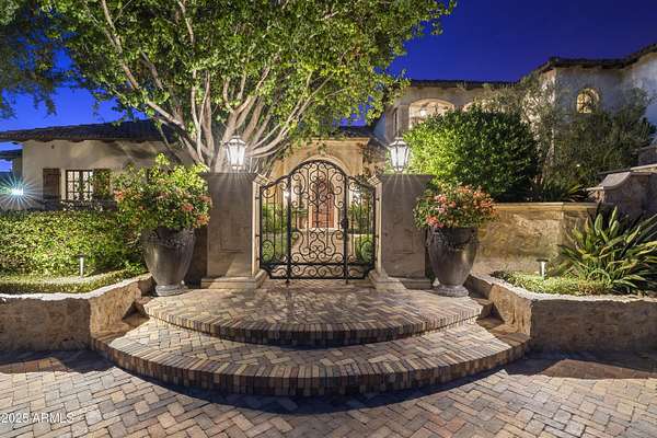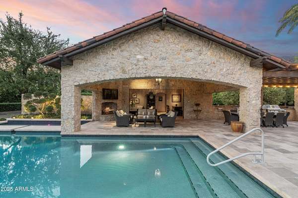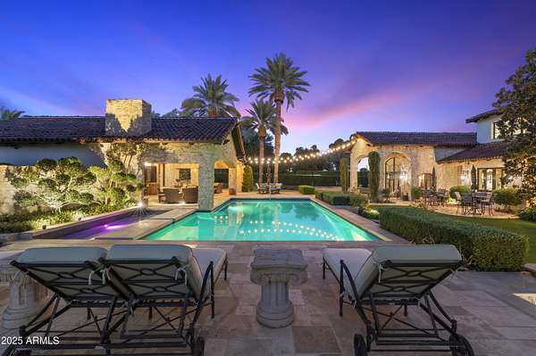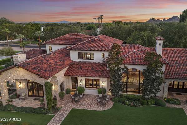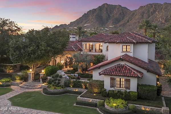 Positioned on one of Arcadia's most coveted and prestigious streets, this French-inspired Mediterranean estate stands as a true ''one-of-one'' residence of global caliber. Encompassing over 10,000 sq ft on 1.8 acres, and built by Stellar Development with uncompromising attention to detail, the home is a showcase of Old World artistry fused with modern refinement. Every element reflects bespoke craftsmanship: reclaimed antique hickory floors from Pennsylvania, Venetian plaster walls, a soaring double barrel-vaulted dining room, hand-scraped cabinetry, and a patio of French barrel-vaulted brick, custom cut on-site. Subtle touches-such as an antique horse trough garden sink-infuse timeless charm. The estate features... 5 bedrooms and 7 bathrooms, including dual His and Her primary baths, a sophisticated office overlooking, and access to its own serene courtyard. The state-of-the-art theater offers an automated retractable wall; when OPEN, the theater room extends into your everyday living space in addition to an upstairs game room with three private ensuite suites. The grounds are as meticulously curated as the interiors, with mature trees, manicured lawns, and raised gardens surrounding a shimmering 745 sq ft glass-tiled pool. An 864 sq ft guest house extends the hospitality, while iconic Camelback Mountain creates an unrivaled backdrop, evoking the romance of Tuscany. An estate of this pedigree is exceedingly rareand an irreplaceable expression of elegance, craftsmanship, and exclusivity in the heart of Arcadia.