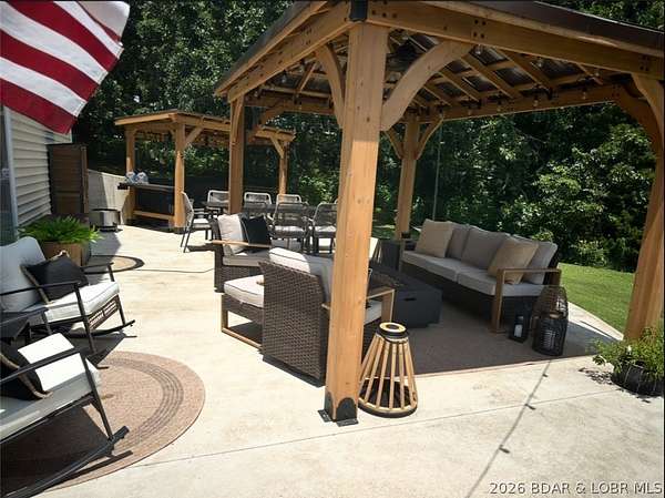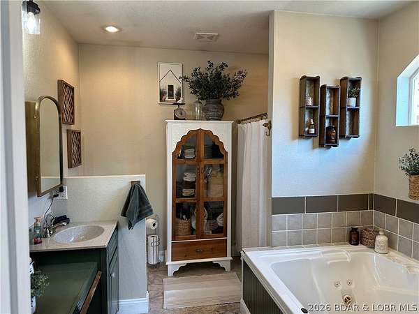 Beautifully updated 4-bedroom, 2.5-bath home situated on 8.26 scenic acres! Fresh paint, new carpet, and updated flooring throughout, except for the beautiful hardwood floors, this home completely move-in ready. Water heater-75 gal, dishwasher(2024), roof(2023) and HVAC system(2022) for added peace of mind. The stunning kitchen features granite countertops, a large center island, and flows seamlessly into the inviting living room with a cozy gas fireplace, perfect for both entertaining and everyday living. The spacious primary suite offers a private en suite bath with a relaxing jetted tub. Upstairs you'll find three additional bedrooms ) and a full bathroom set up perfectly for a mother-in-law suite, complete with a partial kitchen and its own laundry area. This space walks out onto the back patio for added privacy and flexibility. 1.5-acre stocked lake in your front yard! You'll also love the pergola area, ideal for relaxing or hosting gatherings while enjoying the peaceful surroundings. High Point for elementary and middle school per tax records. However, may be able to choose between Russellville or Eldon School Districts. Tax records/district boundary maps are not definitive.