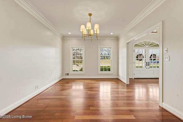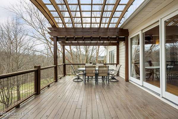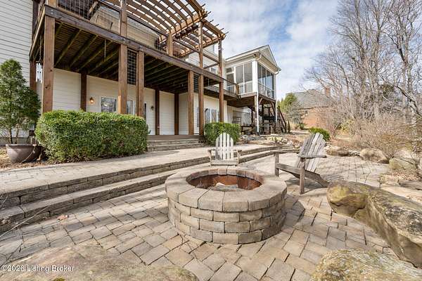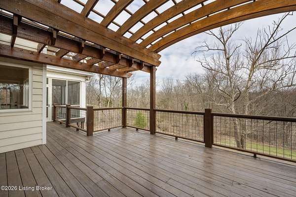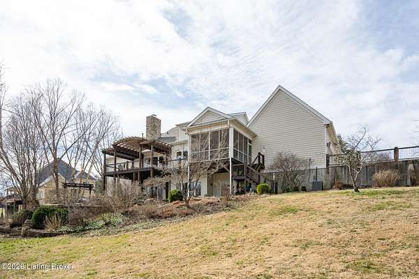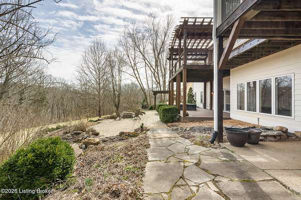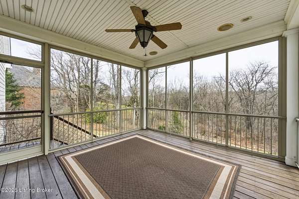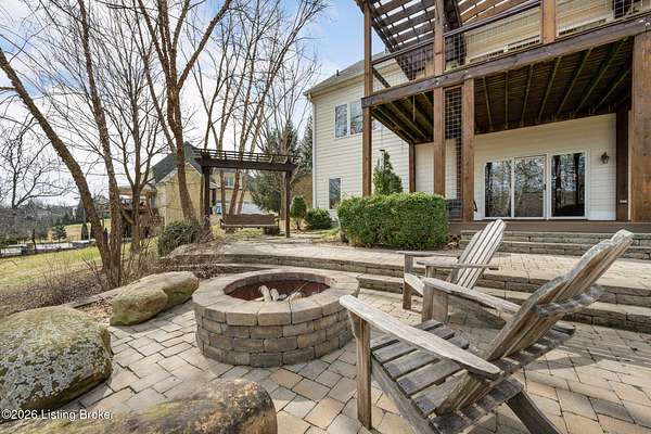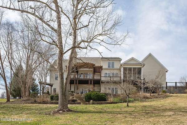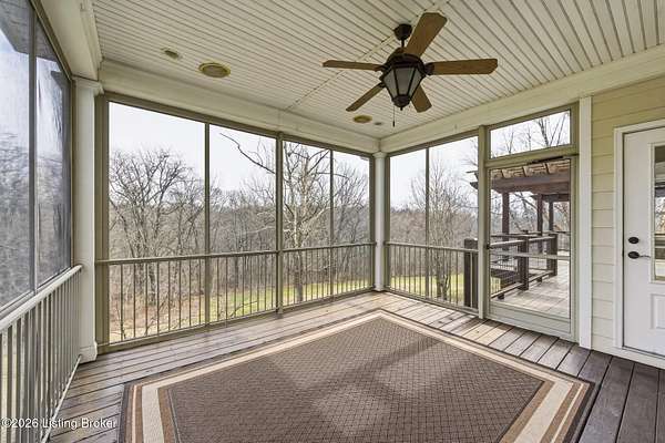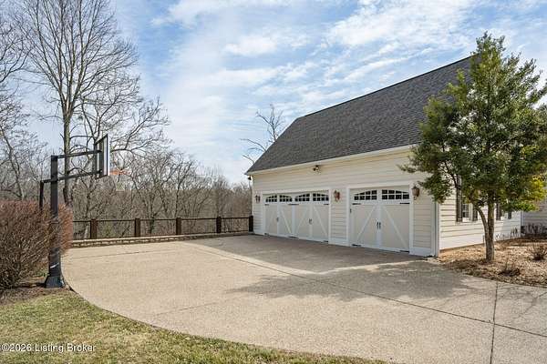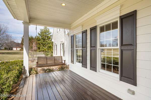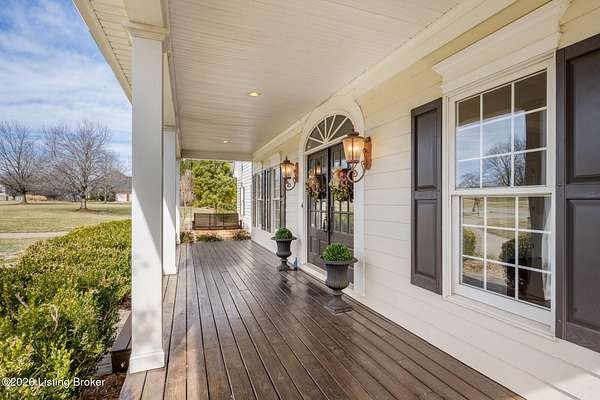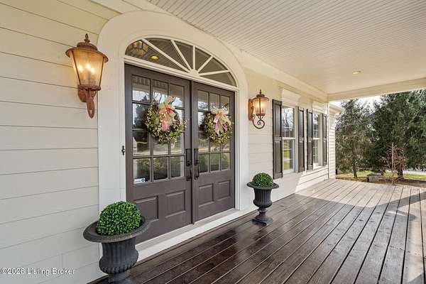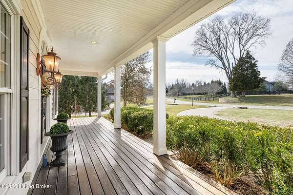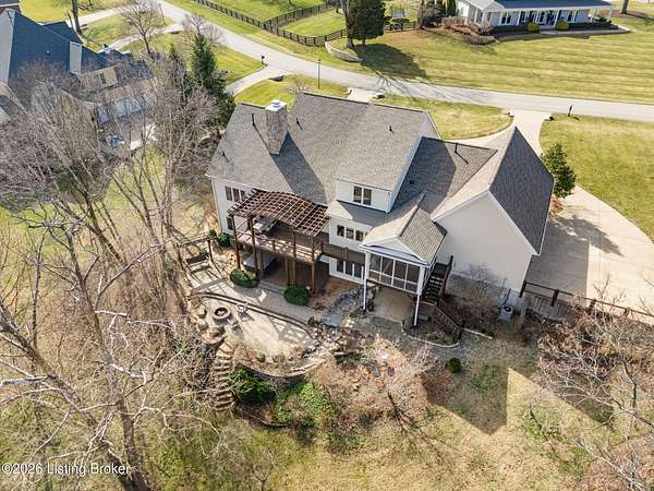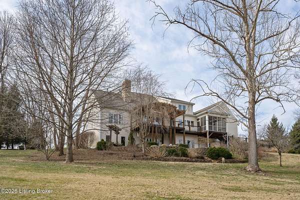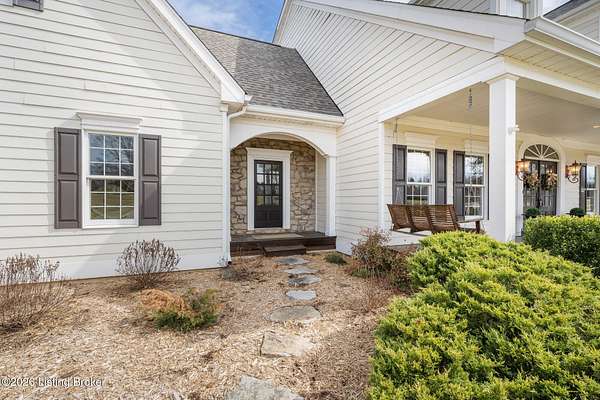 Welcome to a home that masterfully blends timeless Southern elegance with the warmth of everyday living. Nestled on 3.5 private acres in the prestigious Reserves of Sleepy Hollow, this custom-built residence by renowned Blacketer Co offers exceptional craftsmanship, luxury details, and a setting that feels both elevated and genuinely livable. Recent updates including striking new light fixtures, fresh paint, and new carpet make this home truly move-in ready with immediate possession available. From the moment you arrive, the grand, welcoming front porch sets the tone - gracious, inviting, and designed for morning coffee, evening conversations, and everything in between. Inside, a dramatic two-story foyer with hardwood floors creates a beautiful first impression. A stately office with oversized windows overlooks the front porch, while a formal dining room provides the perfect setting for elegant entertaining or meaningful family gatherings. The heart of the home is the stunning family room, where custom built-ins frame a handsome fireplace and walls of windows capture serene, park-like views of the backyard. The space flows seamlessly into the chef's kitchen featuring an oversized granite island, extensive cabinetry, and a walk-in pantry. The light-filled breakfast nook is ideal for casual meals, while the extraordinary screened porch invites you to enjoy outdoor living year-round. The first-floor primary suite is a private retreat, offering space for a sitting area and expansive windows with peaceful views. Thoughtful sound-dampening construction enhances privacy, while the spa-inspired bath and oversized walk-in closet deliver everyday luxury without sacrificing comfort. Additional main-level highlights include a generous mudroom, large laundry room, discreet powder bath, and a three-car garage with extra storage. Upstairs, three spacious bedrooms offer abundant storage, with two featuring charming window seats, and convenient access to two full baths. The walkout lower level extends the living space with a family room, kitchenette, full bath, guest bedroom, game room, dedicated exercise room, and multiple storage areas, including direct outdoor access for gardening and equipment. Designed for exceptional outdoor living, this property offers a screened porch, expansive deck overlooking the acreage and private woods, and a lower-level patio connected to a tranquil water feature. The landscaped grounds feature mature perennials, a stone feature, firepit, pergola-shaded entertaining areas, and a hot tub that will convey with the property. The backyard backs to protected, private woods, creating a peaceful retreat and an ideal setting for a future pool. All of this is complemented by a prime location within the award-winning North Oldham County School District and easy access to Norton Commons, Springhurst, and major highways. This five-bedroom, five-bath luxury residence offers refined living without pretense - elegant, comfortable, and ready to welcome you home with immediate possession available.