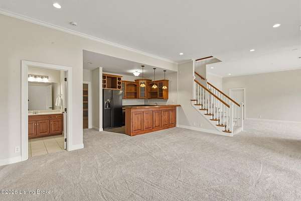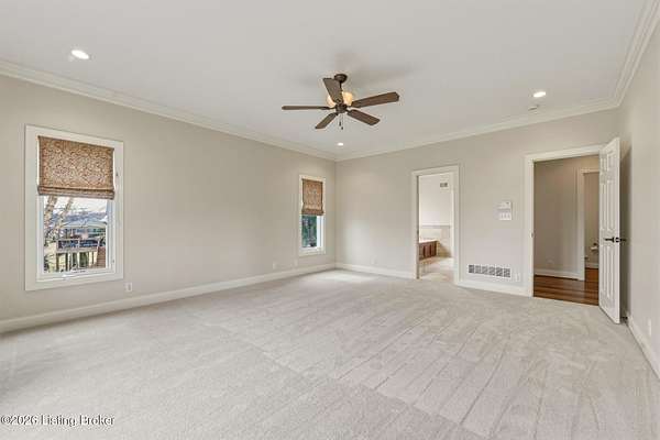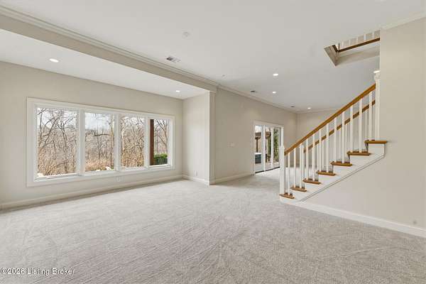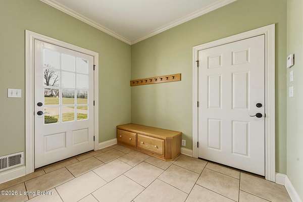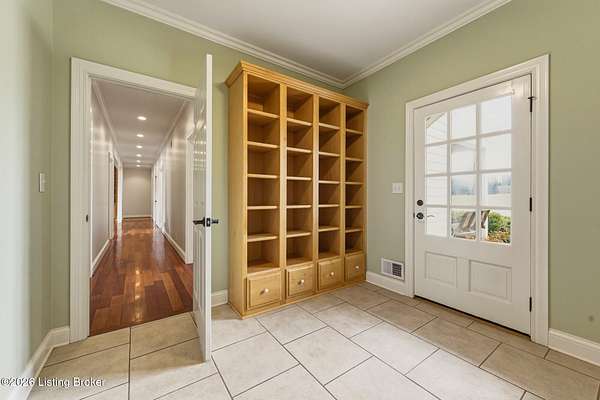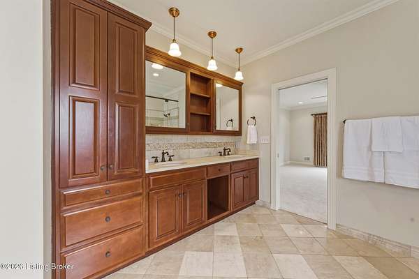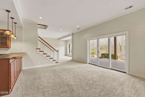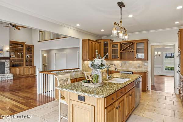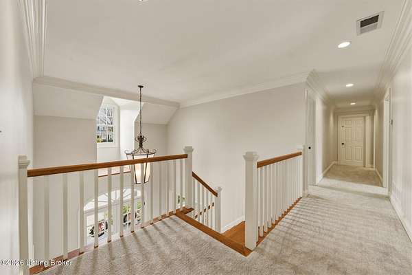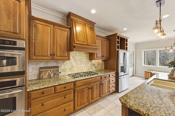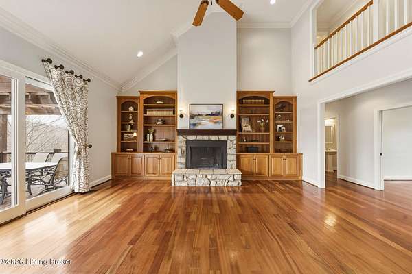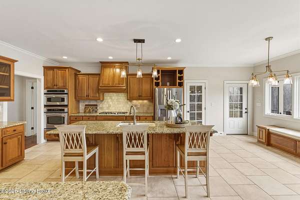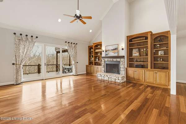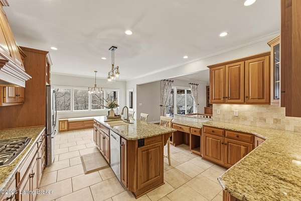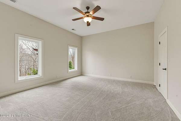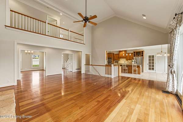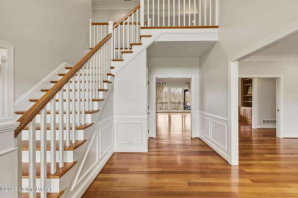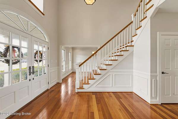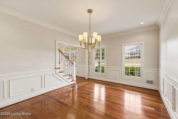 Welcome to a home that masterfully blends timeless Southern elegance with the warmth of everyday living. Nestled on 3.5 private acres in the prestigious Reserves of Sleepy Hollow, this custom-built residence by renowned Blacketer Co offers exceptional craftsmanship, luxury details, and a setting that feels both elevated and genuinely livable. Recent updates including striking new light fixtures, fresh paint, and new carpet make this home truly move-in ready with immediate possession available. From the moment you arrive, the grand, welcoming front porch sets the tone - gracious, inviting, and designed for morning coffee, evening conversations, and everything in between. Inside, a dramatic two-story foyer with hardwood floors creates a beautiful first impression. A stately office with oversized windows overlooks the front porch, while a formal dining room provides the perfect setting for elegant entertaining or meaningful family gatherings. The heart of the home is the stunning family room, where custom built-ins frame a handsome fireplace and walls of windows capture serene, park-like views of the backyard. The space flows seamlessly into the chef's kitchen featuring an oversized granite island, extensive cabinetry, and a walk-in pantry. The light-filled breakfast nook is ideal for casual meals, while the extraordinary screened porch invites you to enjoy outdoor living year-round. The first-floor primary suite is a private retreat, offering space for a sitting area and expansive windows with peaceful views. Thoughtful sound-dampening construction enhances privacy, while the spa-inspired bath and oversized walk-in closet deliver everyday luxury without sacrificing comfort. Additional main-level highlights include a generous mudroom, large laundry room, discreet powder bath, and a three-car garage with extra storage. Upstairs, three spacious bedrooms offer abundant storage, with two featuring charming window seats, and convenient access to two full baths. The walkout lower level extends the living space with a family room, kitchenette, full bath, guest bedroom, game room, dedicated exercise room, and multiple storage areas, including direct outdoor access for gardening and equipment. Designed for exceptional outdoor living, this property offers a screened porch, expansive deck overlooking the acreage and private woods, and a lower-level patio connected to a tranquil water feature. The landscaped grounds feature mature perennials, a stone feature, firepit, pergola-shaded entertaining areas, and a hot tub that will convey with the property. The backyard backs to protected, private woods, creating a peaceful retreat and an ideal setting for a future pool. All of this is complemented by a prime location within the award-winning North Oldham County School District and easy access to Norton Commons, Springhurst, and major highways. This five-bedroom, five-bath luxury residence offers refined living without pretense - elegant, comfortable, and ready to welcome you home with immediate possession available.