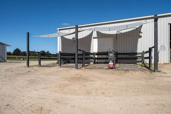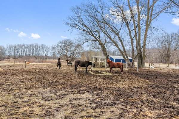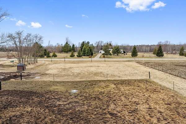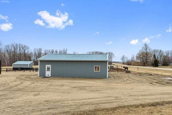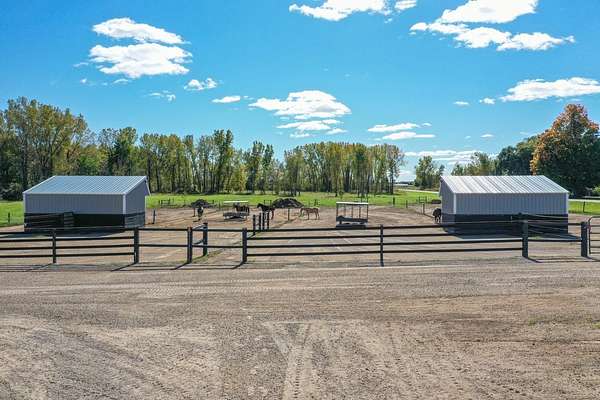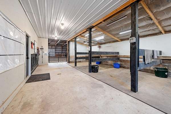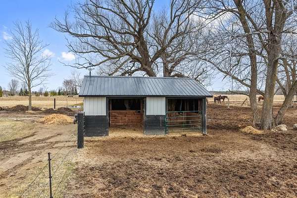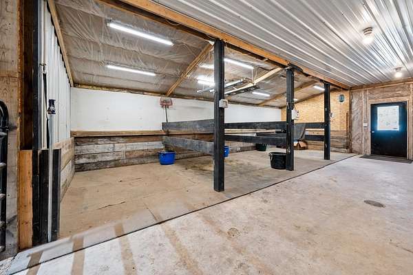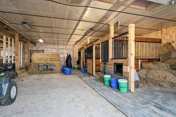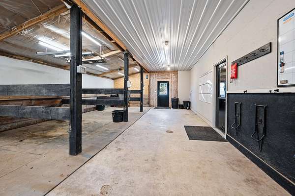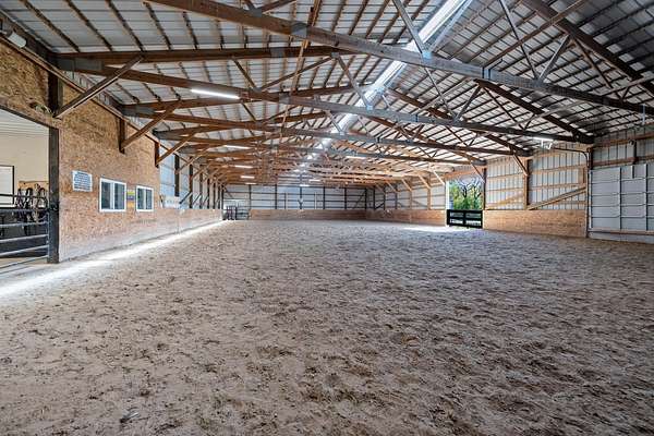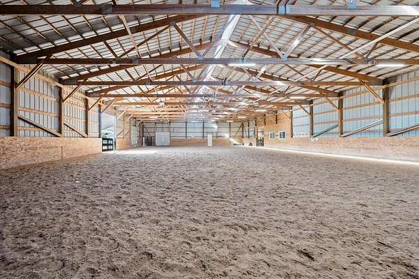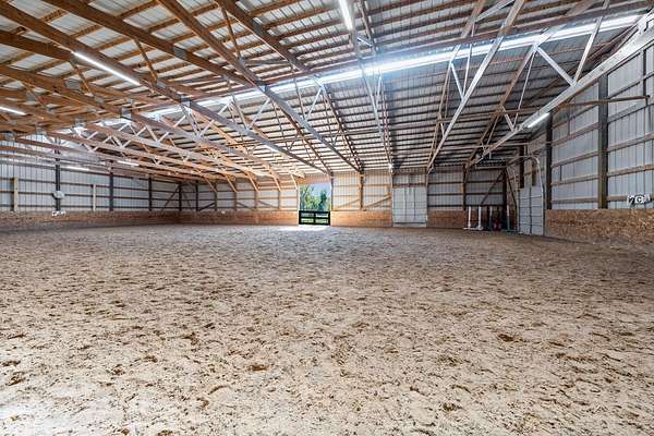 Calling all equestrians! Turn-key property full of boarders & lesson students w/waiting list features a 4BR/1.5BA home on 10.5ac, arena w/mirrors, Reitenrite footing, indoor/outdoor wash+tack stations & more! Kitchen w/butcher-blk counters, pantry, appliances. Huge LR w/cathedral ceiling, exposed beams, stone-faced FP. Primary bedrm w/walk-in cls+half-en suite w/part open ceiling. 1st floor laundry w/incl. W+D! Full bath w/hex-tile & modern vanity. Upr lvl offers flexible lounge space w/knotty pine, big walk-in cls & 3 bedrms. Garage/shed combo w/potential for finished space. Home is heated by economical wood-fired hydronic forced-air system! South of home 12x32 tack rm/lounge has a 1/2 bath. Dry lots w/pro mud-mgmt sys, new fencing & 2 Ritchie heated auto waterers. Taxes & lot-lines TBD.