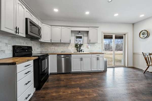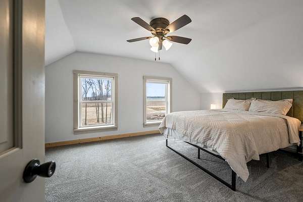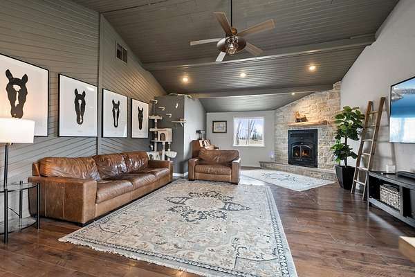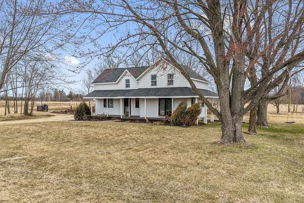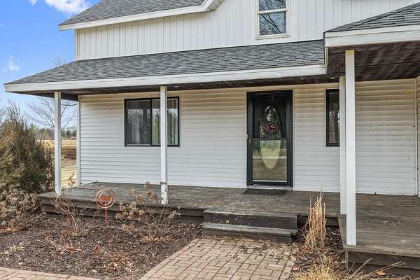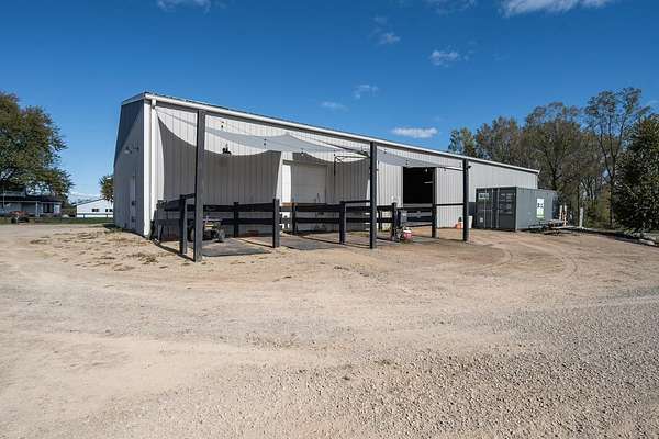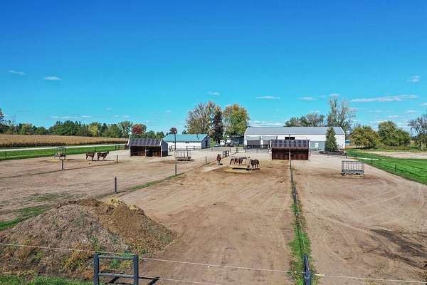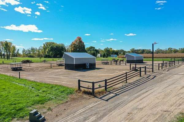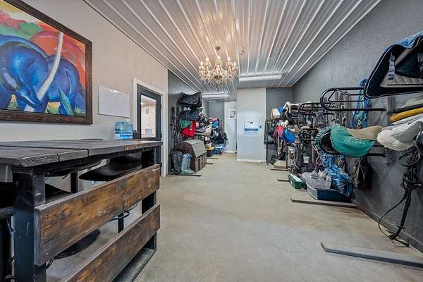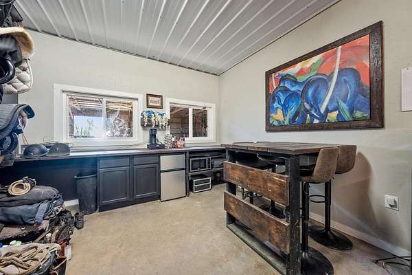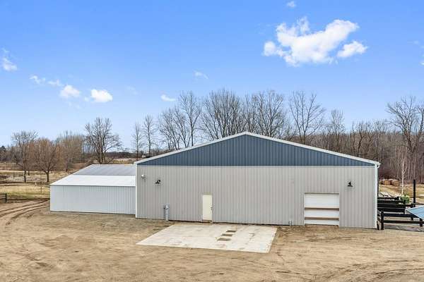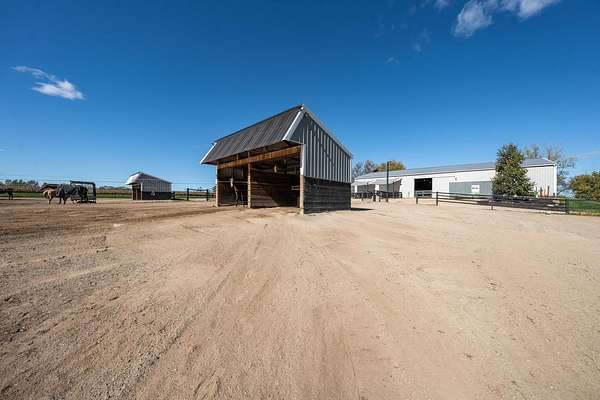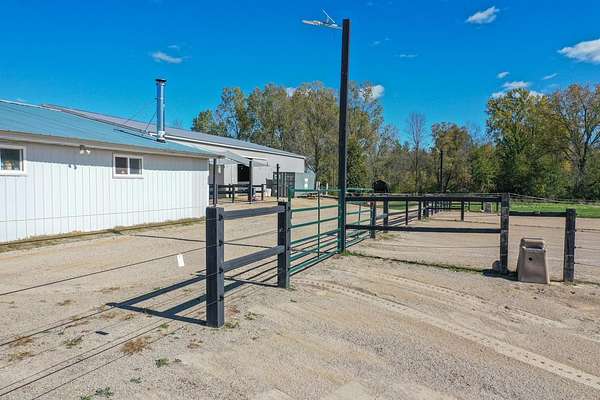 Calling all equestrians! Turn-key property full of boarders & lesson students w/waiting list features a 4BR/1.5BA home on 10.5ac, arena w/mirrors, Reitenrite footing, indoor/outdoor wash+tack stations & more! Kitchen w/butcher-blk counters, pantry, appliances. Huge LR w/cathedral ceiling, exposed beams, stone-faced FP. Primary bedrm w/walk-in cls+half-en suite w/part open ceiling. 1st floor laundry w/incl. W+D! Full bath w/hex-tile & modern vanity. Upr lvl offers flexible lounge space w/knotty pine, big walk-in cls & 3 bedrms. Garage/shed combo w/potential for finished space. Home is heated by economical wood-fired hydronic forced-air system! South of home 12x32 tack rm/lounge has a 1/2 bath. Dry lots w/pro mud-mgmt sys, new fencing & 2 Ritchie heated auto waterers. Taxes & lot-lines TBD.