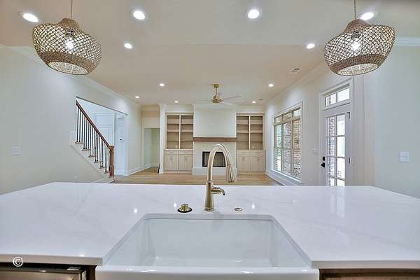 Welcome to this luxury newly built home that defines elegance and comfort, perfectly crafted for those who love to entertain. This spacious 4-bedroom, 3.5-bath home features an open floor plan, seamlessly blending modern sophistication with everyday living. The gourmet kitchen is a chef's dream, boasting gleaming quartz countertops, stainless steel appliances, a walk-in pantry, and an expansive island that invites gatherings. Retreat to the main-level primary suite, your private oasis, complete with double closets and vanities for ultimate convenience and style. The lavish en-suite bath offers the perfect place to unwind after a long day complete with a separate shower and soaking tub. Another wonderful feature of the main level is an additional guest bedroom with an ensuite bathroom. This main level room is perfect for guests or family! The outdoor living space is equally impressive, featuring a large covered porch with a cozy fireplace, making it ideal for hosting year-round. Upstairs provides ample space for family or guests, providing 2 bedrooms, a full bathroom, a flex room, and a walk in storage room. Throughout the home, you will find gorgeous hardwoods, custom cabinetry, and high end fixtures. Whether you're having an intimate dinner or a lively party with friends, this home is built to impress inside and out.