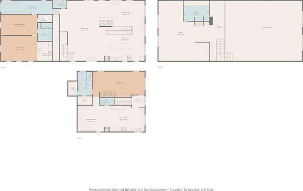 The main entrance, with custom stone gates, leads to a distinctive stucco lodge designed for entertaining. The lodge features a massive great room, vaulted ceilings, an open kitchen and dining, a loft with a full bath, a primary suite with a kitchenette and private entrance, plus a guest room and laundry. Downstairs offers another large kitchen and suite, full bath, and half bath, ideal for gatherings or family retreats.