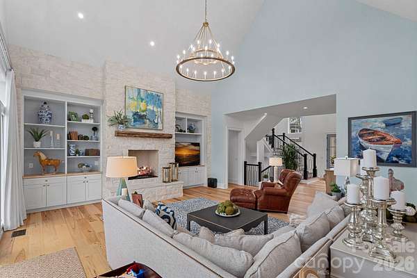 Luxury Waterfront Living on Lake Wylie Experience the pinnacle of lakefront luxury with this newly built 2024 custom residence nestled along the shores of Lake Wylie. Privately set on 2.92 acres along a deep-water, dockable homesite, this 4-bedroom, 4.5-bathroom estate captures breathtaking panoramic views and unforgettable sunsets-offering a rare combination of space, seclusion, and refined waterfront living. Inside, refined elegance meets elevated functionality with soaring ceilings, expansive windows, and rich pecan engineered hardwoods flowing throughout the main living spaces. The open-concept layout is anchored by a stunning chef's kitchen featuring a suite of premier appliances, including a Wolf range and microwave, Sub-Zero refrigerator, freezer, and wine storage, along with a KitchenAid dishwasher and ice maker. A well-appointed scullery adds both function and elegance-perfect for prep, storage, and seamless entertaining. Statement living spaces are enhanced by artisan details, including dramatic Isokern fireplaces and custom Cooperstone Natural Stone finishes, with a striking Wichita White interior feature wall and a curated exterior blend of charcoal, Castle Grey, and Austin White-creating timeless architectural appeal. The primary suite offers a private retreat with serene water views and a spa-inspired bath, highlighted by a designer Miseno tub filler. Thoughtful upgrades such as Visual Comfort ceiling fans and a fully integrated Sonos sound system-both indoors and out-create a seamless blend of comfort, ambiance, and modern convenience. Seamless indoor-outdoor living continues with a covered patio, low-maintenance composite decking, and a fully equipped outdoor kitchen featuring premium Coyote Outdoor Living appliances-perfect for lakeside entertaining year-round. A full, unfinished walk-out basement offers endless potential for customization-whether envisioning a home theater, fitness studio, or additional living quarters. With nearly three acres of privacy, direct access to deep water, and the ability to build your own private dock, this exceptional property invites boating, paddleboarding, and the ultimate Lake Wylie lifestyle-all just a short drive from the conveniences of the surrounding area.