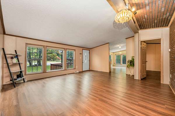 Welcome to your own peaceful escape! Private 3 Bed, 2 Bath Ranch on 11 Wooded Acres - Full Basement & Oversized Garage! This 3-bedroom, 2-bath ranch home sits on a gorgeous 11-acre wooded lot, offering privacy, nature, and endless potential, all just a short drive from town. Step inside to a bright and comfortable layout, with a spacious living room and a functional kitchen with plenty of cabinet and counter space. The primary bedroom includes a private full bath and large closet, while the two additional bedrooms are perfect for guests, work-from-home space, or hobbies. A full, unfinished basement provides even more room to expand or use for storage, a workshop, or recreation. The oversized detached garage is ideal for vehicles, tools, and all your outdoor equipment. Outside, enjoy the peace and quiet of 11 wooded acres, great for hiking, hunting, gardening, or simply relaxing in nature with lots of space and fresh air.