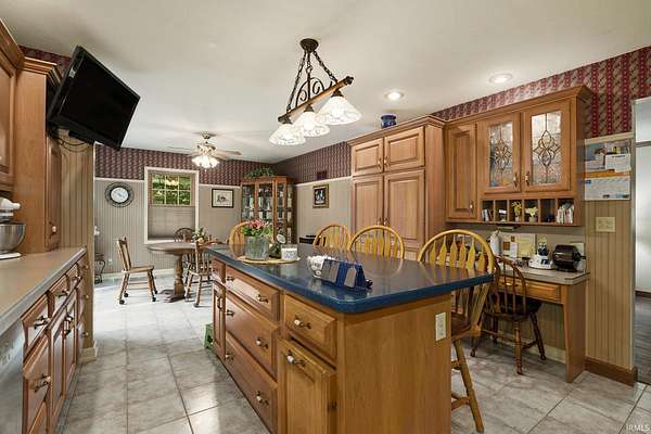 - Breakfast Bar, Built-In Desk, Ceiling Fan(s), Chair Rail, Deck Open, Dishwasher, Eat-In Kitchen, Foyer Entry, Garden Tub, Kitchen Island, Landscaped, Main Floor Laundry, Range-Gas, Refrigerator, Stand Up Shower, Water Filtration System, Water Heater Gas, Water Softener-Owned