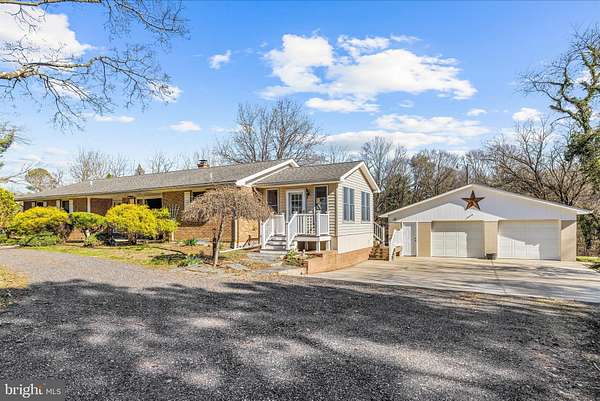 Welcome to 591 Mill Lane in Galena, MD-your private country retreat set on 5.67 unrestricted acres of beautiful Eastern Shore landscape. This charming all-brick ranch style home offers 3 bedrooms and 2 full bathrooms, with over 2000 sq ft of finished living space, blending timeless character with comfortable, everyday living. Inside, you'll find a spacious country kitchen, a separate dining area with a cozy fireplace, and a warm, inviting family room-perfect for gathering and relaxing. A bright sunroom adds additional living space to enjoy year-round, while main-level laundry provides convenience. The full, unfinished basement at almost 1800 sq ft -complete with heat, a large workbench, and ample storage-offers endless potential for a workshop, hobby space, or future finished living area. Step outside and discover what truly sets this property apart. The expansive 5.67-acre lot offers the space and freedom to create your ideal lifestyle-whether that's gardening, homesteading, or simply enjoying the peace and privacy of country living. The property features a 28' x 35' pole barn, a detached oversized (28' x 22') 2-car garage with electric, and a greenhouse/shed, along with a variety of mature fruit and nut trees including cherry, pear, apple, black walnut, pecan, and hazelnut. Relax on the front porch or unwind on the rear patio while taking in the serene surroundings. Recent updates include improvements to the electrical and plumbing systems. Ready for your personal touch, this home offers an excellent opportunity to update and create a space tailored to your style. Conveniently located just minutes to US-301 and approximately 20 minutes to Middletown, DE, this property offers the perfect balance of privacy, space, and accessibility. If you've been looking for space, flexibility, and country charm-this is the one.