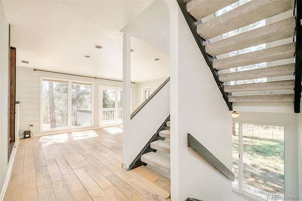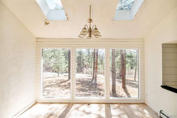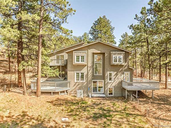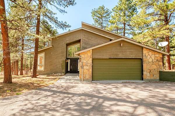 Open House April 19th from 1-3pm. Tucked among towering pines on over 4.5 private acres, this Pinewood Knolls retreat offers a rare opportunity to craft a Colorado dream home in a truly serene setting. Bathed in natural light from expansive windows, this home spans 3,381 square feet and features generous living spaces ready to be reimagined. A garden-level basement enhances the flexible layout, while a wood-burning fireplace anchors the main living area with warmth and charm. The property’s peaceful surroundings create a sense of escape, yet remain conveniently close to town. An oversized two-car garage offers workshop potential, and essential systems — including boiler heat, air conditioning, private well and septic — are already in place. Set within a coveted community, this property offers a unique opportunity with significant upside. Whether renovating or redesigning, the setting provides the perfect canvas to create a custom retreat defined by space, privacy and possibility.