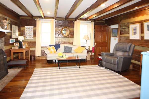 One-of-a-Kind Historic Log Home Where History Meets Luxury - 10 Acres & 4,000+ Sq Ft. Step into a one-of-a-kind property where history meets modern comfort. The heart of this remarkable home is a 250+ year-old log structure, carefully disassembled and relocated from within Washington County and thoughtfully reconstructed on its current farm setting in 1988. Blending historic charm with modern conveniences, this home offers character you simply can't recreate. Expanded in the mid-1990s, the home now boasts over 4,000 square feet of living space featuring reclaimed hardwood floors and a layout designed for grand-scale entertaining. At the center of it all, a massive great room with soaring vaulted ceilings creates an airy, light-filled atmosphere for gatherings. For more intimate moments, retreat to the cozy log den, where a magnificent stone fireplace-complete with a gas starter-serves as the perfect anchor for quiet evenings. The spacious primary suite offers a private retreat with a separate soaking tub, walk-in shower, and large walk-in closet. Downstairs, the finished walkout basement creates the perfect entertaining space-complete with a full bath and wet bar-and can easily serve as an in-law or guest suite. Set on 10 beautiful rolling acres in a peaceful country setting, this remarkable property offers privacy, scenic views, and room to roam while still being conveniently located just minutes from Springfield and Lebanon. A spacious 3-car garage with a walk-up attic provides ample storage, workshop potential, or room for hobbies. Enjoy quiet country living with the perfect blend of historic character, modern comfort, and everyday convenience. NOTE - Owner - Agent
