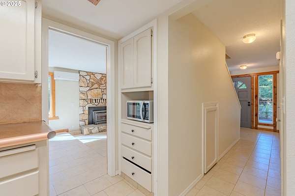 - Dishwasher, Free Standing Range, Free Standing Refrigerator, Pantry, Solid Surface Countertop, Tile