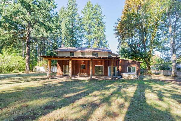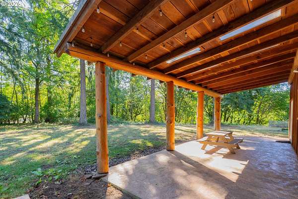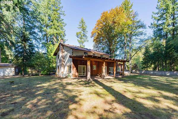 Welcome to this one-of-a-kind property where craftsmanship and character meet functionality. Nestled on 3.5 private acres in Battle Ground, this home offers unique touches you won't find anywhere else-the cedar siding was forged from the very trees on the property, and the stonework was hand-sourced from Mt. St. Helens. Enjoy outdoor entertainment year-round on the covered patio log cabin style from trees grown onsite. Inside, you'll find generously sized bedrooms upstairs, providing comfortable living space for everyone. The lower level offers fantastic potential for a separate ADU with its own entrance-ideal for separate living spaces, extended guests, or rental income. Outside, this property truly shines with a large shop complete with 220 amp power, a barn designed for RV parking, and a carport for additional covered storage. Gutter guards are already in place, ensuring low-maintenance care. This property blends history, utility, and opportunity-ready for you to make it your own.