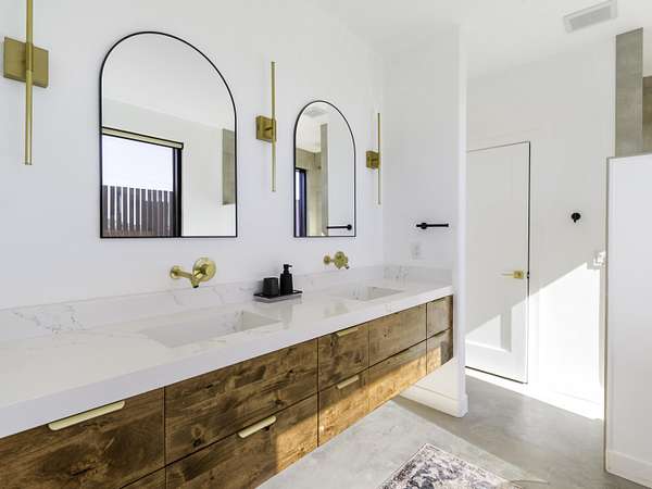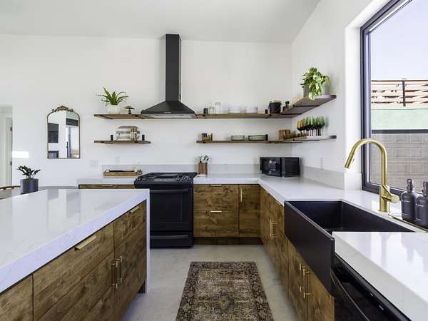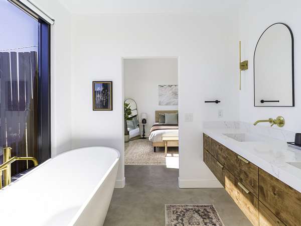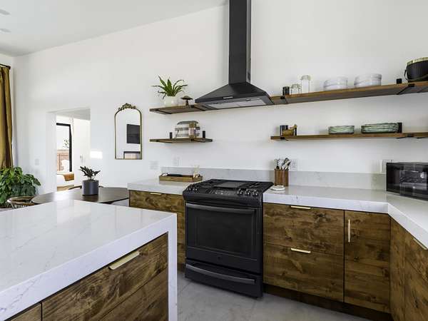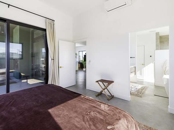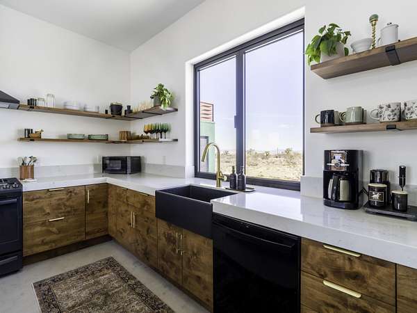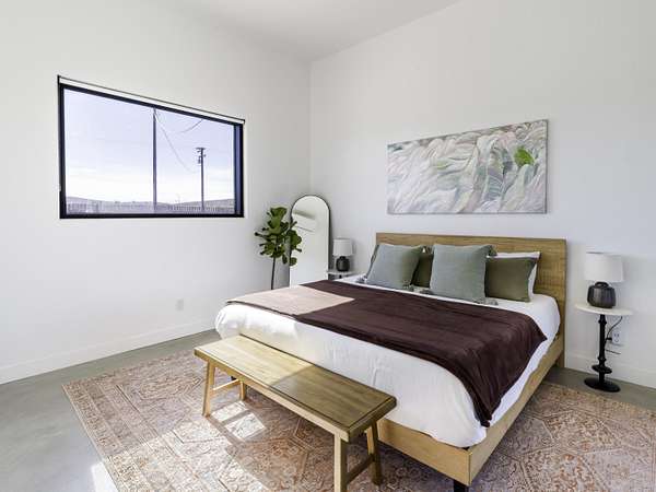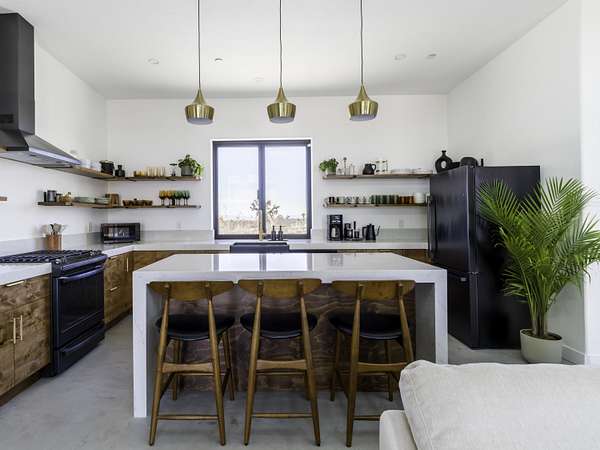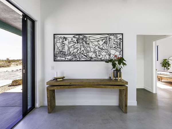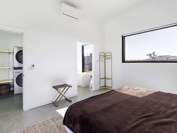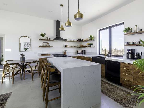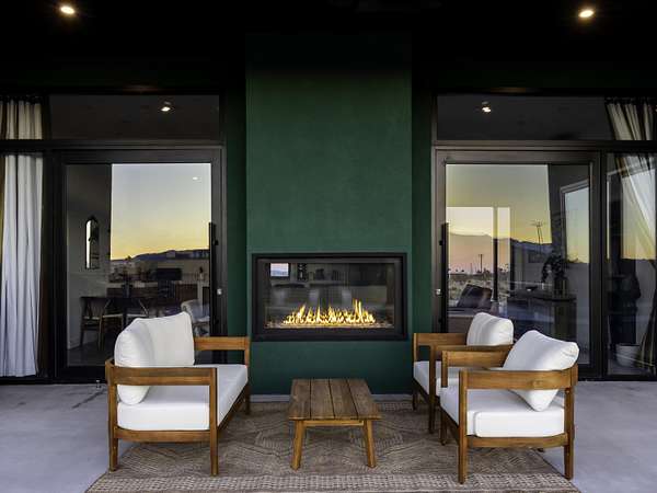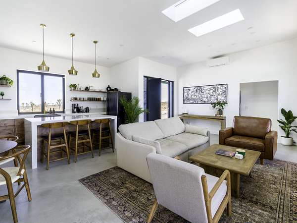 ''The G.O.A.T. at Goat Mountain offers a rare opportunity to own a private High Desert retreat set on approximately 5 acres of pristine land with sweeping views and complete seclusion--no neighboring properties, just open sky and natural beauty. This newer, architecturally refined home blends modern luxury with effortless comfort. A covered front porch opens to an elegant open-concept layout featuring a gourmet kitchen with waterfall quartz countertops, open shelving, statement lighting, and seamless flow into the family room. A striking two-sided indoor/outdoor fireplace anchors the space, while expansive custom glass pivot doors frame breathtaking desert views and enhance indoor-outdoor living. The private primary suite is a serene escape with a spa-inspired bath, soaking tub, walk-in shower, and double vanity. Two additional bedrooms are located in a separate wing and share a beautifully designed full bath. Outdoor living is elevated with a rooftop deck ideal for stargazing, a custom pool and spa, and a thoughtfully designed back porch perfect for relaxing or entertaining. Property features include fully owned solar, EV chargers, and a cement pad intended for a future tiny home addition, located on the rear of the property with water already run and easy connection to existing septic and power. Under San Bernardino County zoning, this nearly 5-acre property allows for expansion and qualifies for two short-term rental permits. The home is currently an active, successful short-term rental, offering both lifestyle and income potential. A rare blend of privacy, luxury, and opportunity--this is more than a home, it's a destination.''