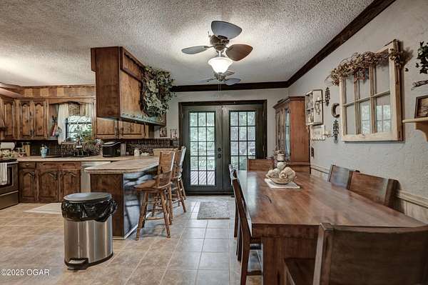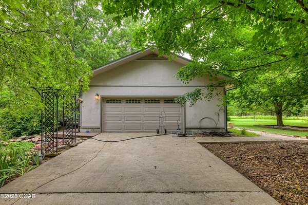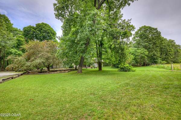 Drive down the shaded lane to this 3-bedroom, 2-bath home offering a peaceful, park-like setting on nearly 5 acres. Enjoy the sound of water from the small fish pond and relax on the spacious deck. The open kitchen and living area provide great space for everyday living and entertaining. A wood-burning fireplace, ducted throughout the home and garage, adds comfort and warmth. Additional features include a lawn irrigation system and a newer HVAC unit. Home is located just south of Joplin city limits.