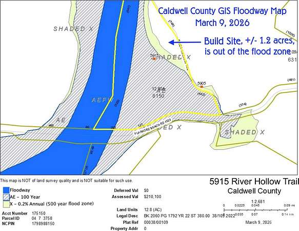 12+ acres with 1,000 ft of river frontage on the Johns River! The property line follows the centerline of the river. Build your dream home, small farm, or family compound on your own park-like property. It is partially cleared and mostly flat. Walk out to the shore with your coffee in the morning or wrap up a kayak trip in your own backyard. Kayak, fishing, pan for gold, or wade and splash on a hot summer day. A gravel driveway is already in place. No minimum square footage or time limit to build within. Lender and builder info available. +/- 1.2 acres of the property is above flood zone, level with River Hollow Trail, and is ideal for a home with a walk out basement. 50 ft NC Stream Buffer and Conservation Easement along bank of river and along the creek that crosses the southwest corner of the lot. This serene property is located in the South's premier Outdoor Lifestyle Community, The Coves Mountain River Club, a 3,200 acre gated community in the Blue Ridge Mountains of North Carolina. There are miles of community exclusive trails to hike, bike, ride horses, or UTVs. River front picnic pavilions, fire rings, and kayak access points on 5 miles of Johns River, on site. The crown jewel of The Coves is the magnificent post and beam clubhouse, Pisgah Lodge, located on one of the highest peaks. There, you'll enjoy a saline pool, fitness center, locker rooms, full kitchen, lending library, pool table, fire pits, wrap around porches, decks, and overlooks to take in 360o views of the Blue Ridge Mountains, South Mountains, and Brushy Mountains. You can see all the way to Mount Mitchell, the highest peak east of the Mississippi. The Coves is a Dark Sky Community, exterior lighting protocols minimizes light pollution and provide breathtaking star-gazing. Down by the river you can garden your private plot at the Community Garden or join your neighbors to care for and harvest the community cooperative vineyard. Pickle-ball and shuffleboard courts, putting green, and a picnic pavilion are located at another Coves's park, Wyatt's Landing. There are 2 Coves Equestrian Centers and a thriving equestrian club. (There are 17 private bars too). There is even a Dog Park! Join your neighbors for social events, excursions, hiking, travel, yoga. 500,000 acre Pisgah National Forest and the Wilson Creek Wild and Scenic River Area are across the road! 1.25 hour drive to Charlotte or Asheville, minutes to Lenoir, Blowing Rock, Morganton, and the Blue Ridge Parkway.