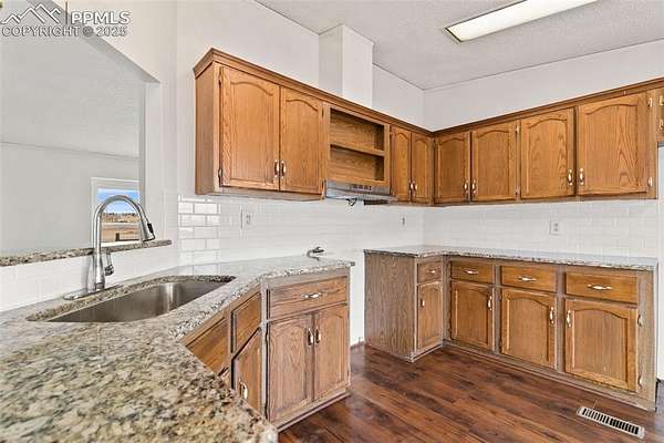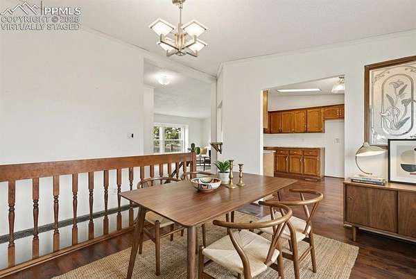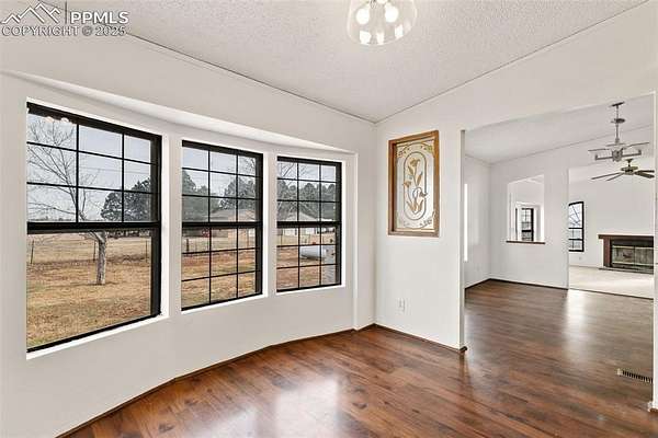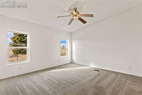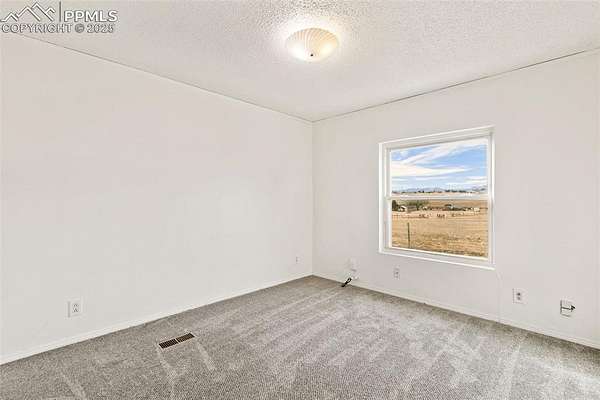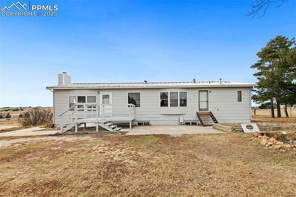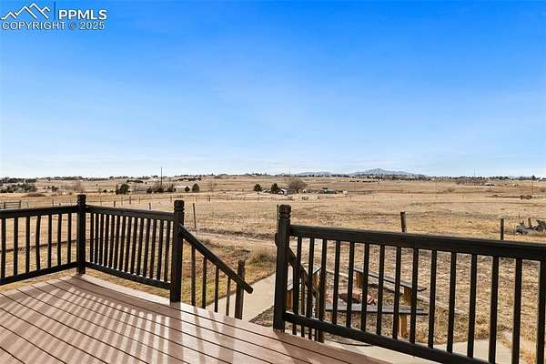 A fantastic opportunity awaits with this fully fenced 5 acre property featuring a 5 bedroom home with a finished basement, detached garage, loafing shed style barn with 2 stalls just minutes from all the amenities that Falcon offers! As you drive up you will notice the new exterior paint on the home, garage, and barn as well as the metal roof and usable decks on both the front and back of the home. Upon walking up to the front door you immediately notice the beautiful Pikes Peak views to the west that you can enjoy seeing from the front deck as well as many windows in the home. The inside of the home has been tastefully updated with brand new carpet, new interior paint, granite counters in the kitchen and both main level bathrooms. The main level features two living areas, one with a wood burning fireplace and the other featuring beautiful views out of the front picture windows. The primary bedroom has ample space, a walk in closet and an attached 5 piece bathroom. The finished basement features 2 more bedrooms, an additional room for an office or gym, full bathroom with a new tub and surround as well as an unfinished space perfect for all your extra stuff! The home also has a newer water heater installed in 2024, furnace in 2018, and a 40 year guaranteed metal roof. With no HOA you can bring your trailers, RV's, 4 wheelers and animals! Opportunities do not come along like this often, take a look and take advantage today!