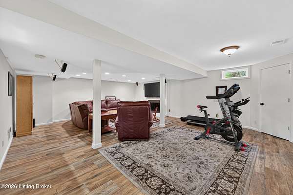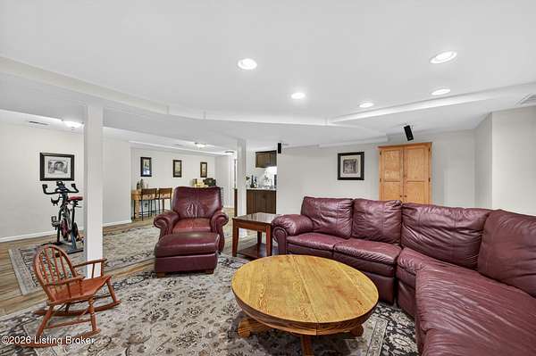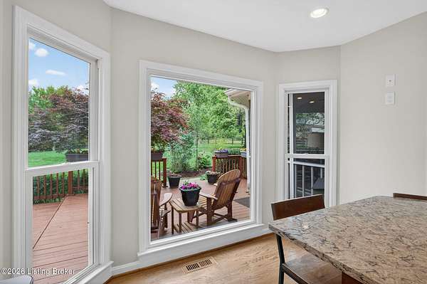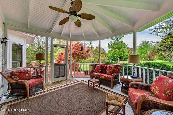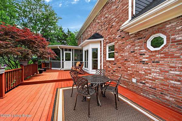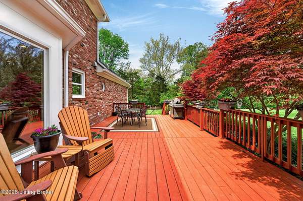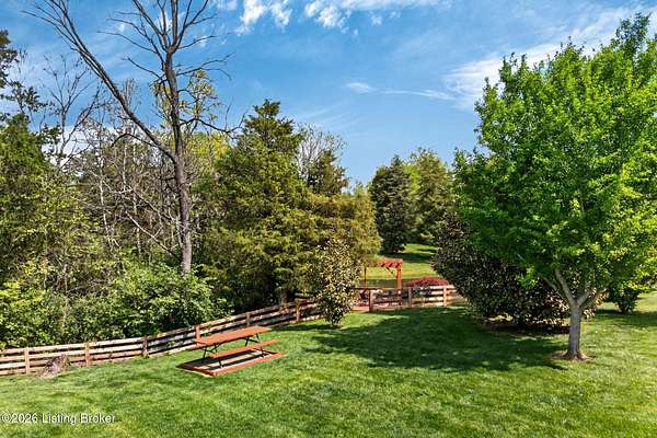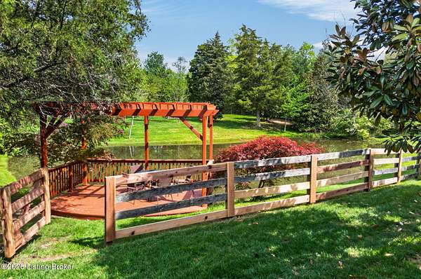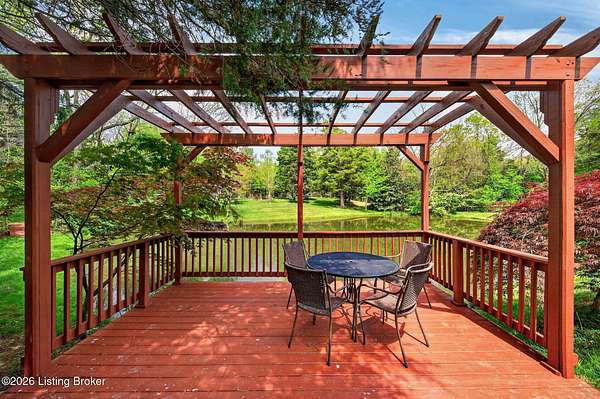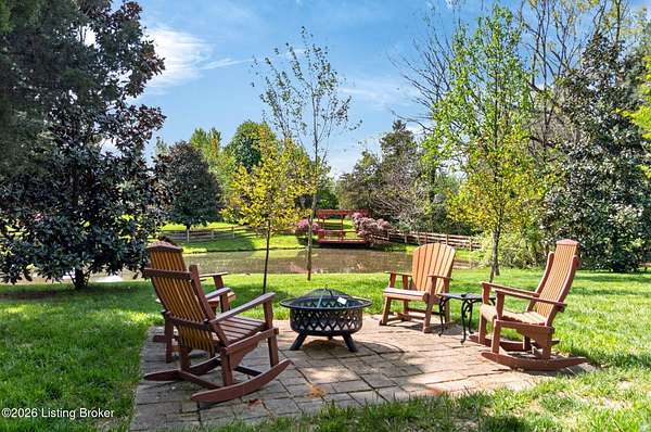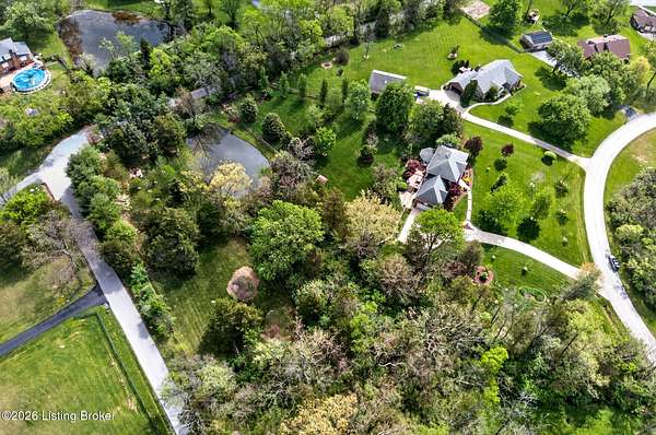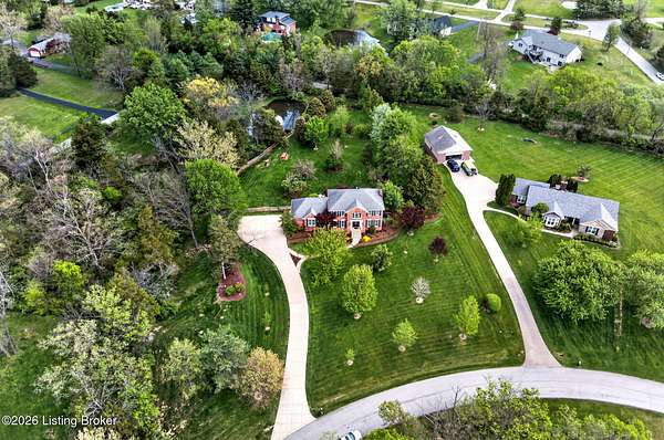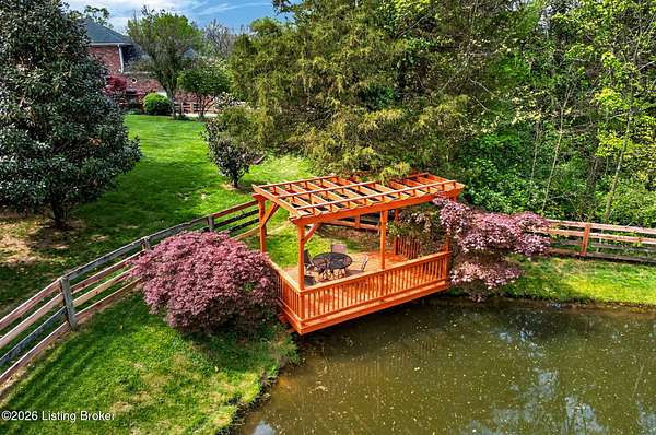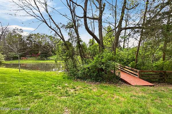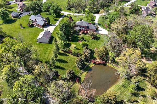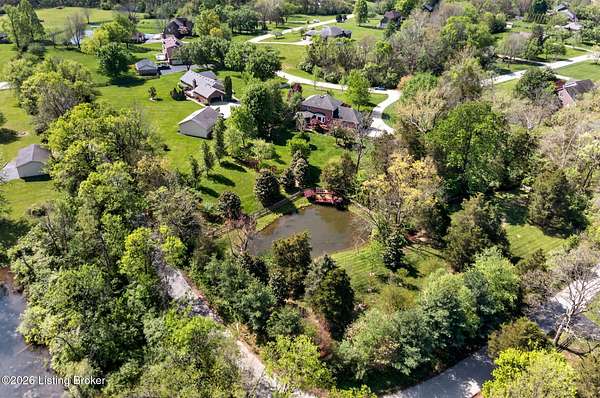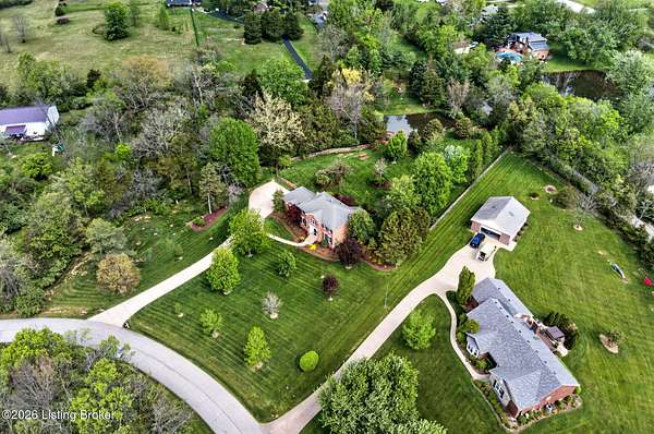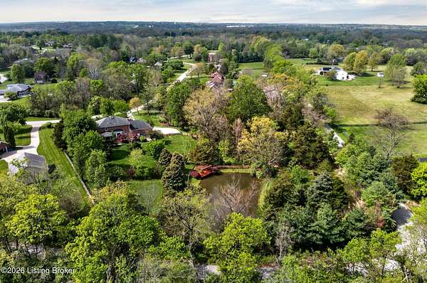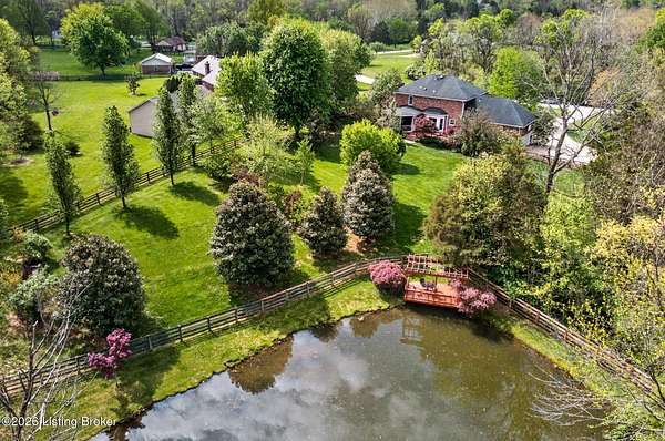 Welcome to 5916 Centerwood Drive, a 4-bedroom home with a true 5th bedroom option, set on nearly 2.5 acres that live like your own private nature preserve. This is a setting defined by serenity, complete with a stocked pond, mature trees, and layered outdoor living spaces that create a true retreat experience right at home. From the moment you arrive, you will feel it. A sense of quiet, space, and calm that immediately sets this property apart. The all-brick exterior, curved walkway, and established landscaping create a tucked-away presence that feels private and peaceful. Inside, the home offers nearly 3,500 finished square feet of well-designed living space that supports both everyday living and the ability to fully unwind. At the heart of the home is a truly custom chef's kitchen designed for real life and real use. Floor-to-ceiling cabinetry provides exceptional storage, paired with granite countertops and a large island with seating. High-end appliances include a Monogram six-burner gas range and Advantium oven. Every detail has been considered to create a space where people naturally gather, making it both functional and inviting. The main level flows easily from room to room, creating a connected and comfortable environment. The family room is centered around a gas fireplace with built-in shelving and cabinetry and opens directly to the back deck, where the views immediately pull your attention outdoors. A flexible front room offers the option of a private office, library, or additional living space. A full bath and dedicated laundry room add convenience to the main level. Upstairs, the primary suite offers a true retreat within the home. Tray ceilings, hardwood floors, and a spacious layout create a calming atmosphere, while the ensuite bath features a double vanity with granite countertops and a beautifully finished walk-in tile shower. Three additional bedrooms, each with hardwood flooring and natural light, provide comfortable and versatile spaces for family or guests. The finished lower level expands the home's flexibility with a large recreation area, built-in wet bar, and surround sound setup ready for entertaining or relaxing. A bonus room with a closet functions easily as a fifth bedroom, guest suite, home gym, or office. The outdoor setting is where this property truly becomes a haven. The stocked pond, mature trees, and thoughtfully designed landscaping create an environment that feels like a private escape. A screened gazebo porch with a vaulted ceiling and ceiling fan, an expansive deck, a pergola positioned at the water's edge, and a dedicated fire pit patio all provide distinct places to relax, gather, and take in the views. A charming footbridge leads across the pond to additional green space, while horse board fencing frames the property and enhances both function and character. Daily life here looks like coffee on the screened porch overlooking the water, evenings by the fire pit, and weekends spent enjoying the pond, open green space, and multiple outdoor living areas without ever needing to leave home. Freshly painted in Spring 2026 and meticulously maintained, this home is move-in ready and offers a combination of acreage, water feature, outdoor living design, and flexible interior space that is rarely found in one property.