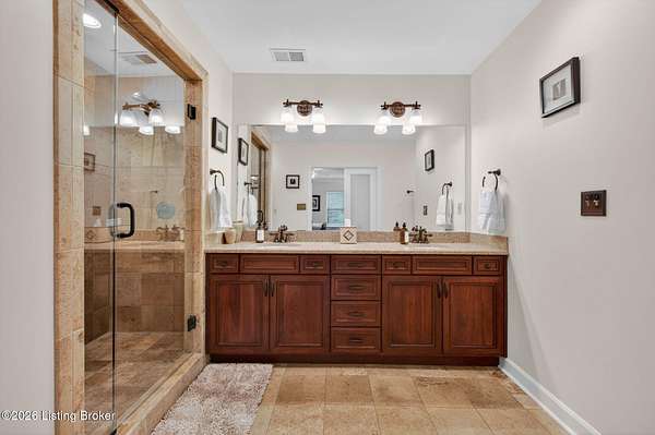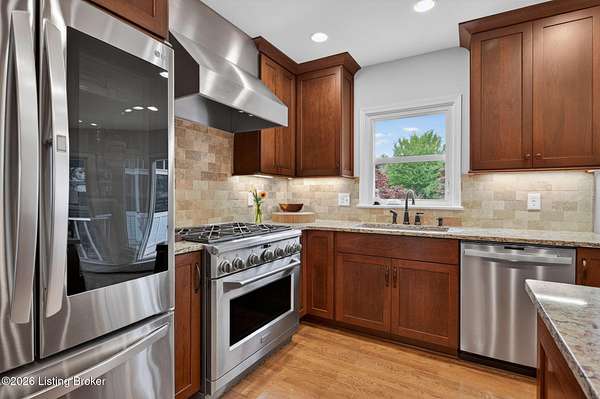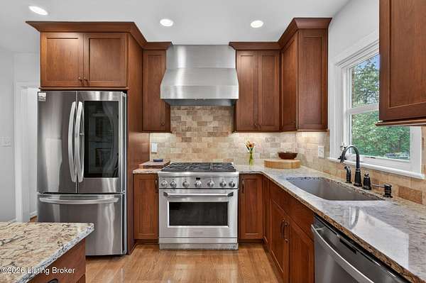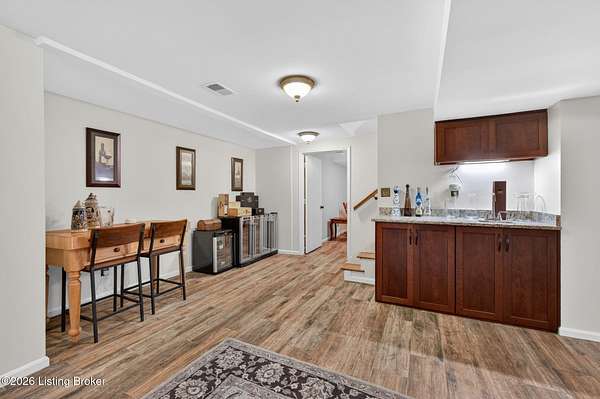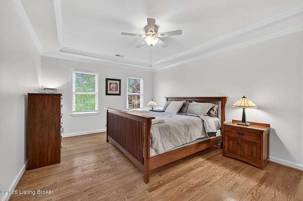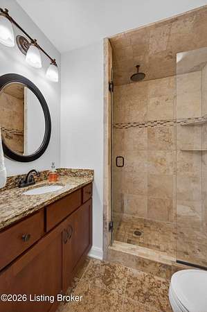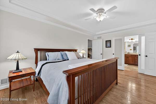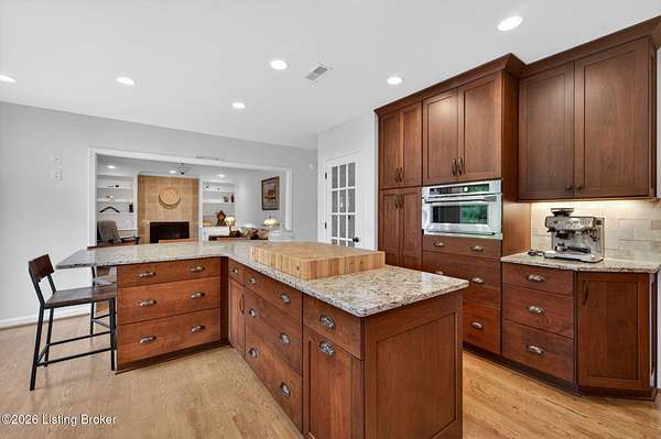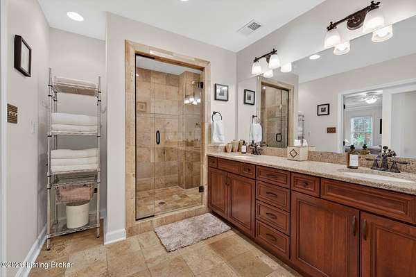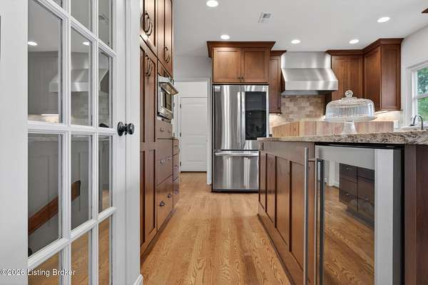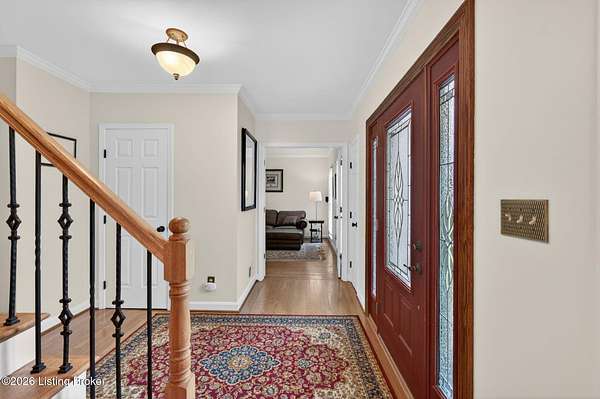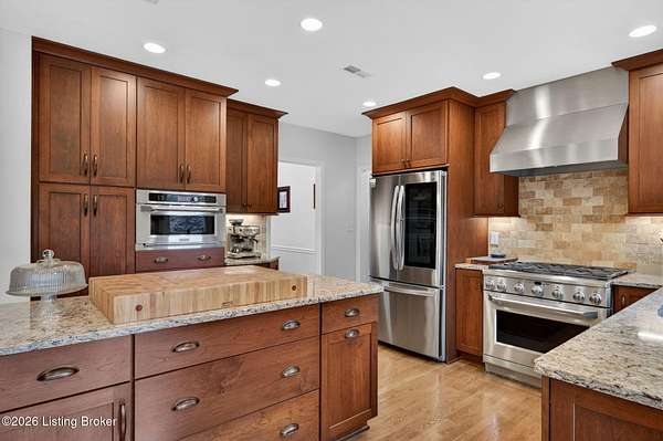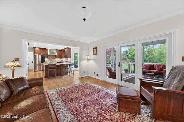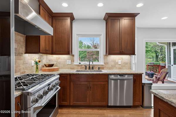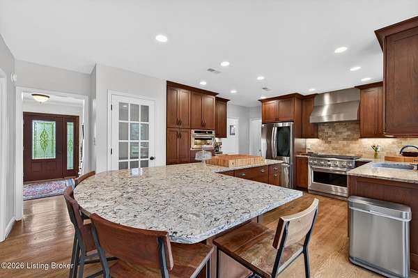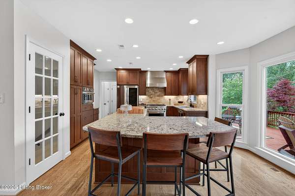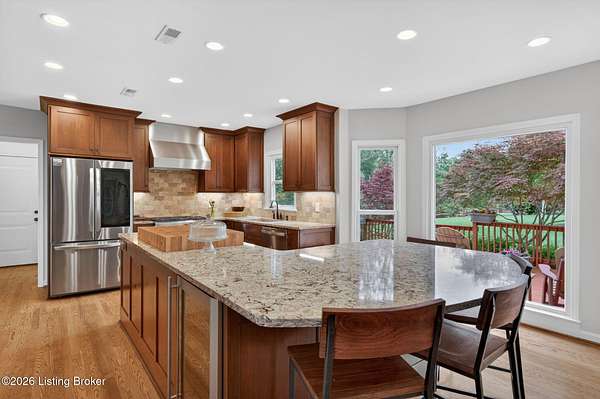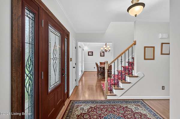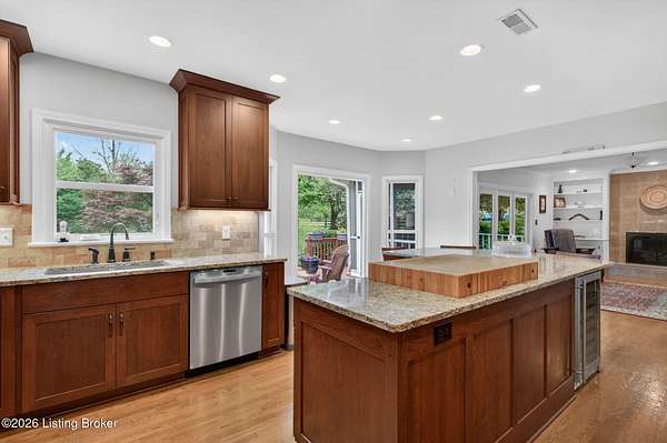 Welcome to 5916 Centerwood Drive, a 4-bedroom home with a true 5th bedroom option, set on nearly 2.5 acres that live like your own private nature preserve. This is a setting defined by serenity, complete with a stocked pond, mature trees, and layered outdoor living spaces that create a true retreat experience right at home. From the moment you arrive, you will feel it. A sense of quiet, space, and calm that immediately sets this property apart. The all-brick exterior, curved walkway, and established landscaping create a tucked-away presence that feels private and peaceful. Inside, the home offers nearly 3,500 finished square feet of well-designed living space that supports both everyday living and the ability to fully unwind. At the heart of the home is a truly custom chef's kitchen designed for real life and real use. Floor-to-ceiling cabinetry provides exceptional storage, paired with granite countertops and a large island with seating. High-end appliances include a Monogram six-burner gas range and Advantium oven. Every detail has been considered to create a space where people naturally gather, making it both functional and inviting. The main level flows easily from room to room, creating a connected and comfortable environment. The family room is centered around a gas fireplace with built-in shelving and cabinetry and opens directly to the back deck, where the views immediately pull your attention outdoors. A flexible front room offers the option of a private office, library, or additional living space. A full bath and dedicated laundry room add convenience to the main level. Upstairs, the primary suite offers a true retreat within the home. Tray ceilings, hardwood floors, and a spacious layout create a calming atmosphere, while the ensuite bath features a double vanity with granite countertops and a beautifully finished walk-in tile shower. Three additional bedrooms, each with hardwood flooring and natural light, provide comfortable and versatile spaces for family or guests. The finished lower level expands the home's flexibility with a large recreation area, built-in wet bar, and surround sound setup ready for entertaining or relaxing. A bonus room with a closet functions easily as a fifth bedroom, guest suite, home gym, or office. The outdoor setting is where this property truly becomes a haven. The stocked pond, mature trees, and thoughtfully designed landscaping create an environment that feels like a private escape. A screened gazebo porch with a vaulted ceiling and ceiling fan, an expansive deck, a pergola positioned at the water's edge, and a dedicated fire pit patio all provide distinct places to relax, gather, and take in the views. A charming footbridge leads across the pond to additional green space, while horse board fencing frames the property and enhances both function and character. Daily life here looks like coffee on the screened porch overlooking the water, evenings by the fire pit, and weekends spent enjoying the pond, open green space, and multiple outdoor living areas without ever needing to leave home. Freshly painted in Spring 2026 and meticulously maintained, this home is move-in ready and offers a combination of acreage, water feature, outdoor living design, and flexible interior space that is rarely found in one property.