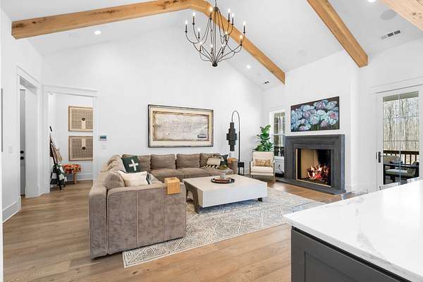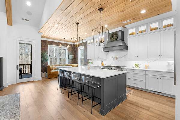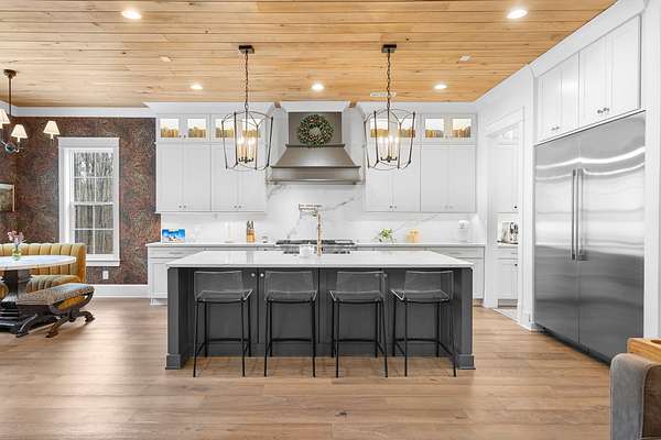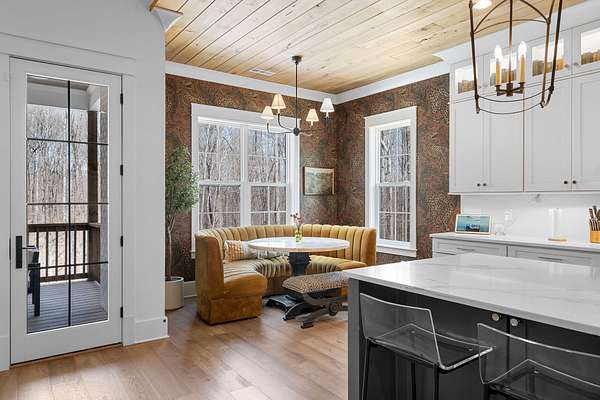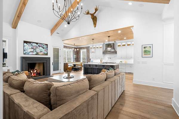 Step inside to a warm, inviting interior with soaring vaulted ceilings that create an open, airy feel. The foyer provides a welcoming transition into the dining room, while the thoughtfully designed kitchen is a dream for cooking & entertaining. Highlights include a 48" dual-fuel range, pot filler, 60" double refrigerator/freezer, butler’s pantry & walk-in pantry. Easy access to both the dining & breakfast rooms makes hosting effortless. The living room with a wood-burning fireplace, is filled with natural light & flows seamlessly to a covered deck. Perfect for morning coffee or relaxing evenings. The main level features a spacious Primary Suite designed as a true retreat, with vaulted ceilings, a large walk-in closet & well-appointed bath for comfort & function. A 2nd bedroom with a full bath is also on the main level.