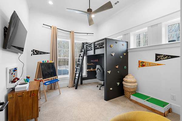 The 5-acre property has been thoughtfully cleared to maintain its wooded charm while maximizing usable space. Enjoy new landscaping, a custom treehouse & even your own putting green—something for everyone.