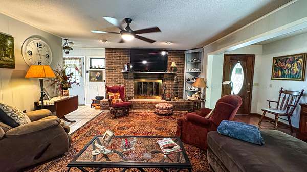 Est $1,169/moSitting countryside on 4.32 +/- acres, this Ranch style home features 4 bedrooms, 4 bathrooms, a wood burning fireplace, centra vac system w/ collection points in each room, a conveniently located laundry shoot, spacious basement with ample storage & a built-in storm shelter. Conveying a two car basement garage, and a covered carport through the circled driveway.