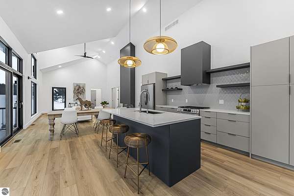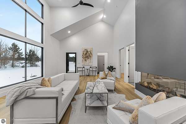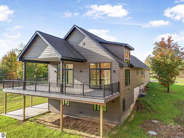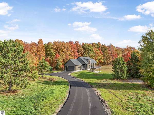 Introducing Paradise Ranch with over 200 acres of incredible property to enjoy and call home. Beautiful landscape throughout and where this stunning custom contemporary home sits. Paradise Ranch is part of one of the fastest-growing areas in Grand Traverse County. This contemporary exquisite 4-bedroom, 2.5-bathroom home offers 3,500 square feet of luxurious living space, on 3 acres of gorgeous, wooded views, featuring hardwood flooring, high ceilings, and a cozy fireplace to enjoy during the nip of the colder months. The magnificent views are complemented by the home's energy efficiency and its spacious walk-in closets among other amenities. Paradise Ranch is set on some of the most breathtaking landscape with rolling hills and heavily wooded sites, each 3+ acre parcel ensures ultimate privacy. This development will be a gated property for owners only offering even more privacy and security. Located within 20-30 minutes of Traverse City and Cadillac, this home is perfectly situated for convenient access to all the amenities you need. You'll be part of a community with highly rated schools and ample outdoor recreation opportunities, as trails can connect to state land for hiking, snowmobiling, and more. Plus, pole buildings and barndominiums are allowed, offering endless possibilities. Don't miss this opportunity to embrace a life of comfort and tranquility in Paradise Ranch.This home will include newly installed asphalt driveway and an underground irrigation system, to be completed by seller prior to closing!