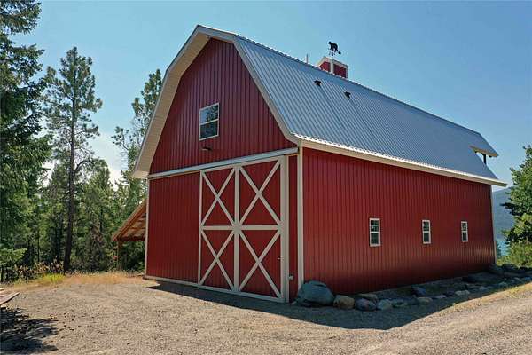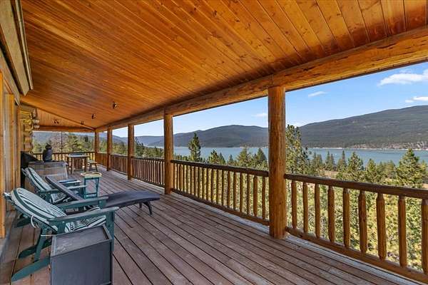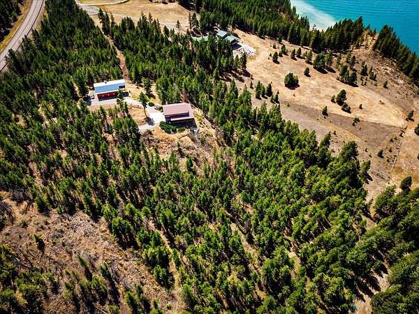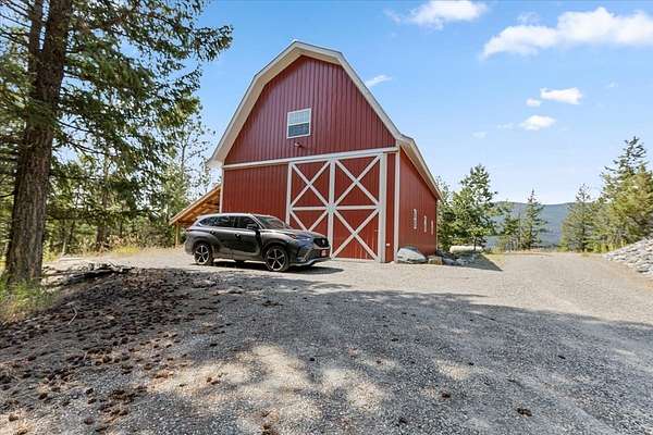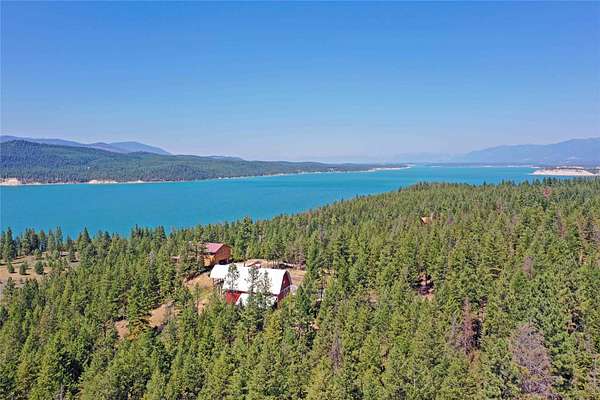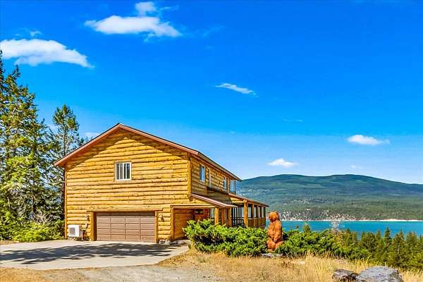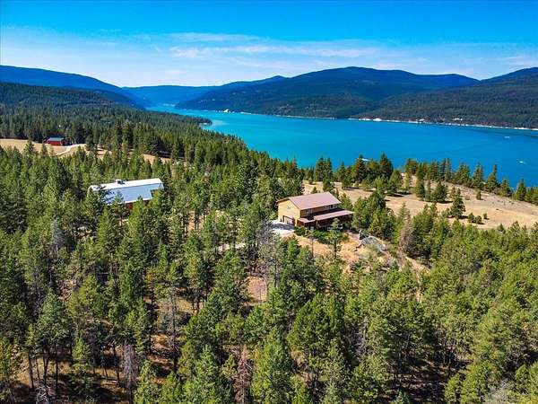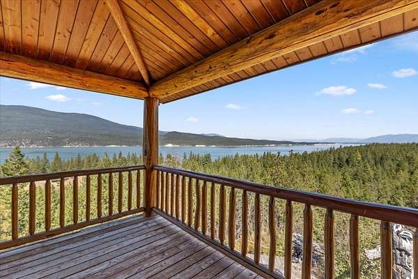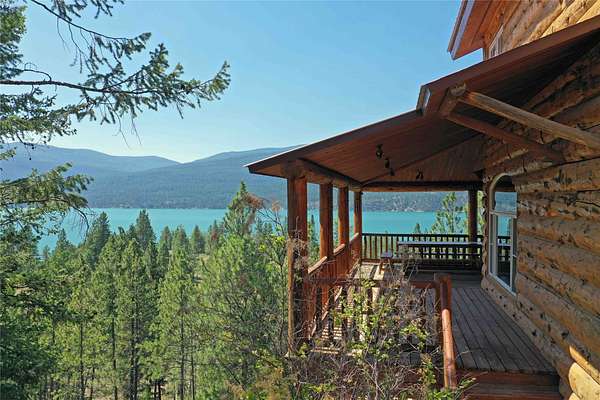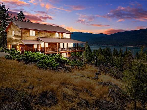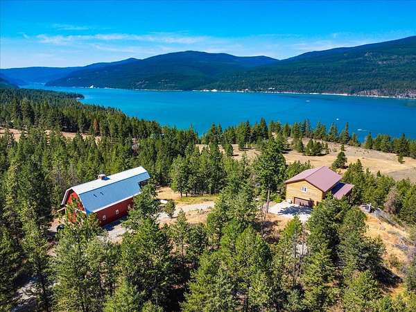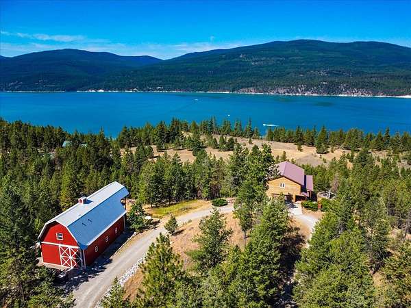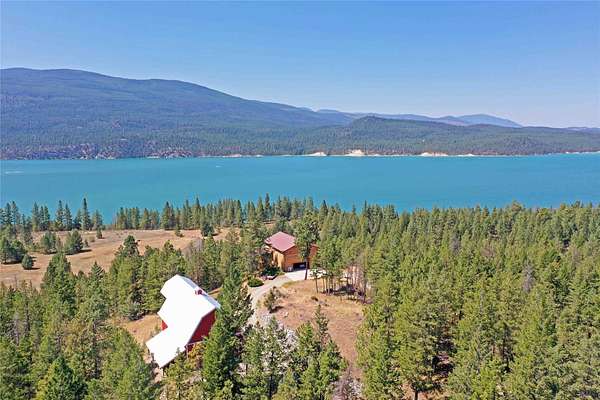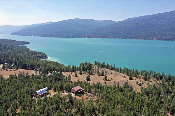 Perched on the rocky bluffs above Lake Koocanusa, with endless views that span from the mountains to the waters edge, this property is designed to lift you above the trees and into the big sky, immersing you in Northwest Montana's natural landscape. The three-story carefully-crafted log cabin is situated at the edge of a private forest and just above a forest service boundary, providing ample privacy and easy access to the quiet shoreline beneath you. Inside, the windows boast endless lake views from every angle of the house, making this property one of a kind. Step out onto the double wraparound covered decks, and let the views of the Canadian Rockies and sounds of the serene lake waters take your breath away. Follow the established game trails to the sandy shores for a nice hike and refreshing swim. Take relaxing under the stars to a new level while soaking in the hot tub situated among natural rock outcroppings. Designed for entertaining, the property consists of a main lodge and a modern barndominium that can function as luxurious guest quarters or a unique vacation rental. The cabin has 4 bedrooms and 4 baths, and the barndominium boasts 2 bedrooms, 2 baths and bonus rooms with abundant space. The barn is designed to meet all your boat and toy storage needs and has an additional attached garage and carport. Located minutes from Abayance Bay Marina, this property offers easy access to boating, waterfront dinners and popular summer concerts. This stunning mountain retreat is truly the last of its kind.