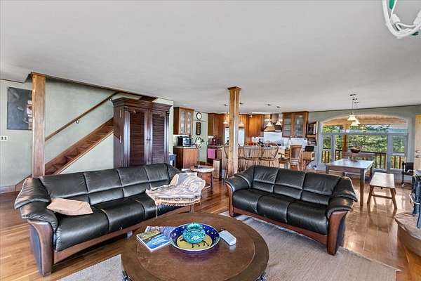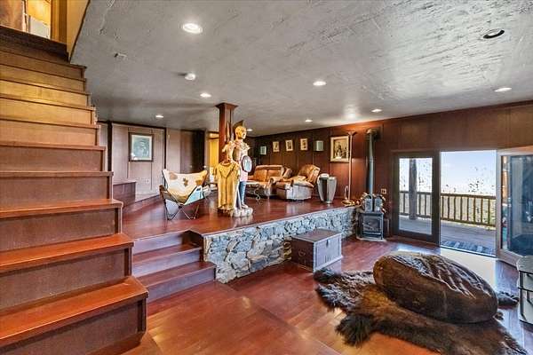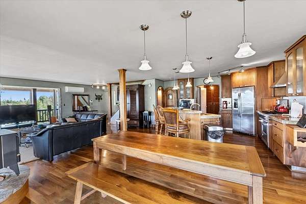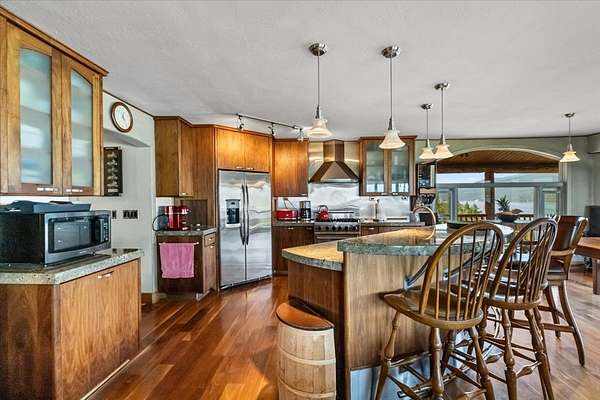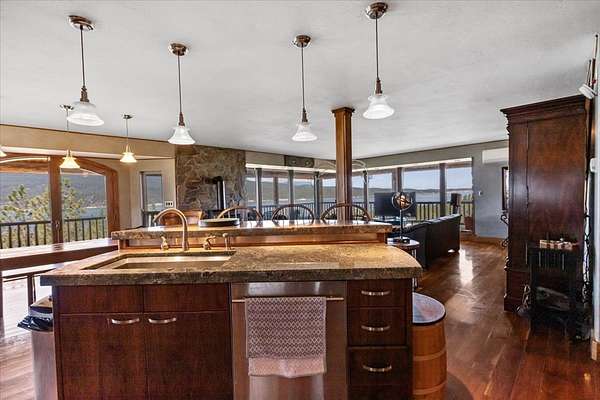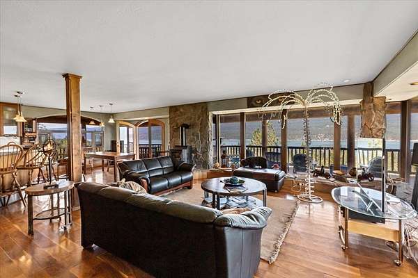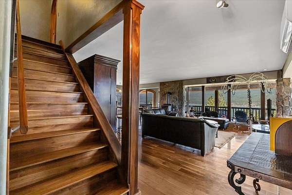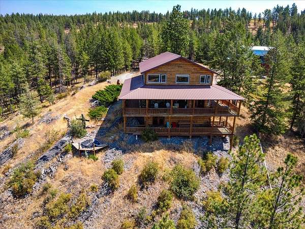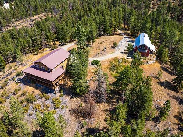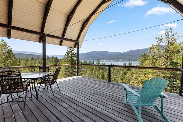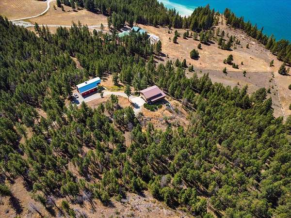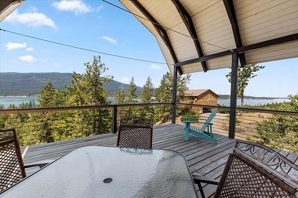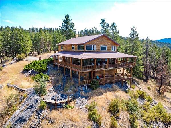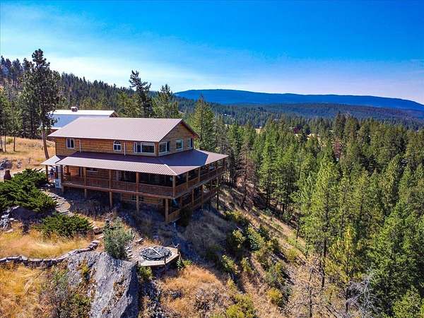 Perched on the rocky bluffs above Lake Koocanusa, with endless views that span from the mountains to the waters edge, this property is designed to lift you above the trees and into the big sky, immersing you in Northwest Montana's natural landscape. The three-story carefully-crafted log cabin is situated at the edge of a private forest and just above a forest service boundary, providing ample privacy and easy access to the quiet shoreline beneath you. Inside, the windows boast endless lake views from every angle of the house, making this property one of a kind. Step out onto the double wraparound covered decks, and let the views of the Canadian Rockies and sounds of the serene lake waters take your breath away. Follow the established game trails to the sandy shores for a nice hike and refreshing swim. Take relaxing under the stars to a new level while soaking in the hot tub situated among natural rock outcroppings. Designed for entertaining, the property consists of a main lodge and a modern barndominium that can function as luxurious guest quarters or a unique vacation rental. The cabin has 4 bedrooms and 4 baths, and the barndominium boasts 2 bedrooms, 2 baths and bonus rooms with abundant space. The barn is designed to meet all your boat and toy storage needs and has an additional attached garage and carport. Located minutes from Abayance Bay Marina, this property offers easy access to boating, waterfront dinners and popular summer concerts. This stunning mountain retreat is truly the last of its kind.
