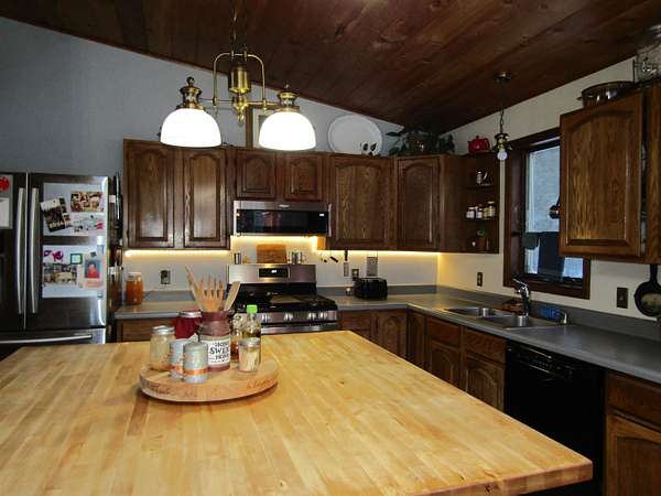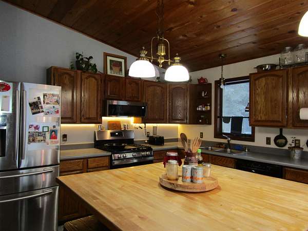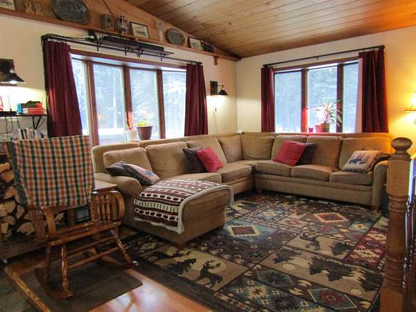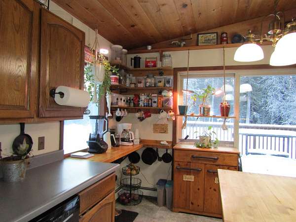 Solidly built home set on 7.5 acres, featuring a beautifully maintained yard with garden, chicken coop, and greenhouse--ideal for a true Alaskan hobby farm. The property is surrounded by mature spruce forest, offering exceptional privacy and a serene, natural setting. The open living area boasts a tongue-and-groove vaulted ceiling, a Blaze King wood stove, and direct access to a large deck overlooking the land. The home is heated by an oil-fired boiler with a wood stove backup for added efficiency and peace of mind. A detached, heated shop provides over 1,200 square feet of versatile workspace. This property offers the perfect balance of rugged Alaskan living and modern convenience, where you can enjoy the feeling of having the forest to yourself while staying warm and comfortable in a thoughtfully built home.