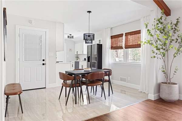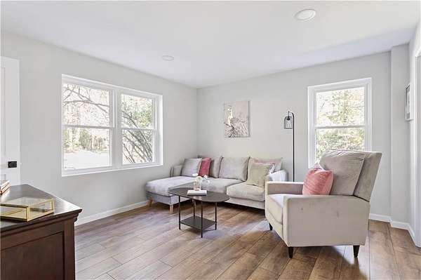 Welcome home to your own private retreat where modern comfort meets everyday ease across more than three acres of natural beauty. Set back from the road, the home greets you with quiet beauty from the moment you arrive. Privacy and a rare sense of calm define the experience here. A full renovation delivers a clean finish throughout. Warm espresso floors guide you from one space to the next, creating a rich sense of continuity from the open kitchen to the living and dining areas. Sunlight fills the main level to keep everyday life feeling effortless. The kitchen blends classic styling with sleek cabinetry, tile flooring, and black stainless appliances to create a space that is both functional and beautiful. Hosting feels natural and mornings feel bright in this thoughtful layout. The primary suite lives like a treehouse sanctuary. Wake each day to the serenity of nature and unwind at night in a calming spa like bathroom. The walk in closet offers generous storage and feels like a happy place all its own. A dedicated home office is perfectly placed to offer a luxurious work escape that stays connected to the outdoors. Focus comes easily when your workspace overlooks peaceful scenery. Every bathroom has been beautifully remodeled with a designer eye for comfort. The finished terrace level further expands the way you live with a generous entertainment area ready for your pool table, movie nights, or your favorite kind of gathering. A large storage section keeps life organized. The private one bedroom apartment with its own entrance and patio adds meaningful flexibility. Accommodate long term guests with comfort or create an income producing opportunity with ease. The magic of this property unfolds as you step outside. More than three acres offer fresh air, lively wildlife, and a welcoming energy throughout the landscape. Quarter mile trails wind gently through the trees, perfect for morning walks, afternoon play, or a quiet reset whenever you need it. Imagine a pool, garden, playground, or even a future second home with space to dream bigger. A detached garage gives you additional room for creativity whether that becomes a workshop, artist studio, or future finished space. With the right offer this home can be purchased fully furnished including select decor, furnishings, and lawn equipment. Move in ready truly means move in and start living. Peace, privacy, thoughtful design, and endless possibility come together to create a home that feels like a rare find.