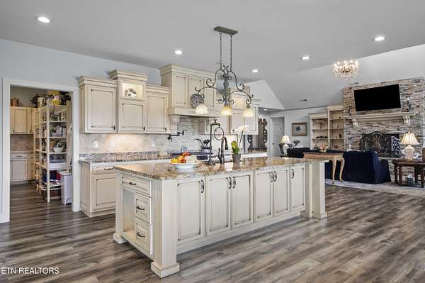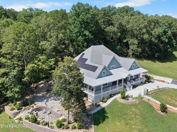 Luxury Smoky Mountain Estate with Unmatched Views and Amenities Discover a one-of-a-kind luxury estate nestled in the heart of the Smoky Mountains. This exceptional property sits on 6.5 private acres, offering breathtaking, panoramic views of the Smokies from nearly every vantage point. Designed for both comfort and grandeur, the four-bedroom, five-and-a-half-bath residence features soaring ceilings, refined finishes, and an open-concept chef's kitchen complete with high-end appliances, an oversized pantry with additional sink and counter space, and abundant storage. Entertain with ease in the private theater room, boasting a 150-inch screen and stadium-style seating for up to 20 guests. Enjoy evenings in the screened-in dining area overlooking the mountains, or unwind on the expansive wraparound porch. The main level includes three bedrooms, perfect for seamless single-level living, while the fully appointed in-law suite in the basement offers its own kitchen, private entrance, and room for multigenerational living. A safe room and space for a future elevator provide additional security and convenience. For car enthusiasts, the property features a four-car garage plus a 40x60 barn, ideal for additional vehicles, toys, or storage. Outdoors, a hardscaped patio with fireplace and water feature, a pond with a walking trail, and meticulously designed landscaping create a serene mountain retreat. Property Highlights: - 4 Bedrooms | 5.5 Baths | In-Law Suite - 150-Inch Private Theater | Seats 20 - Chef's Kitchen | Oversized Pantry with Sink - 4-Car Garage + 40x60 Barn - 6.5 Acres | Pond | Walking Trails - Hardscape Patio with Fireplace & Water Feature - Screened-In Dining Area with Mountain Views - Potential Elevator Access | Safe Room This is more than a home-it's a legacy mountain estate designed for refined living, entertaining, and enjoying the best of East Tennessee's natural beauty.