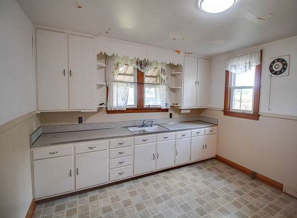 Take a look at this solid brick home located in the Bethalto School District, situated on two parcels totaling approx. 5+/-acres. The property includes the main residence plus a small rental house in need of some TLC, offering potential for additional income or multi-family living. The main house features a 4 bedrooms, 1 bathroom, and a two-car attached garage. It’s connected to city water, though the toilets and two outdoor spigots still run on the original well system. The rental house is fully on city water. Inside the main home, the layout includes a living room, eat-in kitchen with pantry, a mudroom, and a sunroom with walk-outs to both the front and back yards, along with direct access to the attached garage. Two bedrooms and a combined bathroom/laundry room are on the main level, with two more bedrooms and a rec area upstairs. There is a full unfinished lower level as well. The lot includes mature trees, several rows of grapevines, and a brick-and-metal outbuilding for storage. Home and property are being sold AS-IS. Great opportunity for buyers looking for space, rental potential, or a property with room to make it their own.