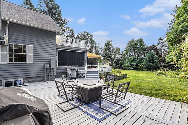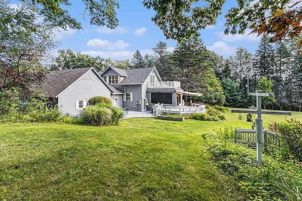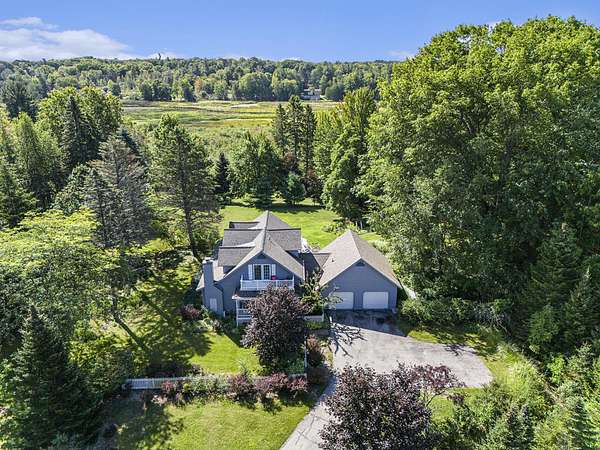 Imagine an idyllic setting along the peaceful marshland of the Lincoln River, with a clearing ringed by ancient oak trees and stately pines...here you will find this lovely century old farm house with all of the comforts of modern living! Situated on 5 acres, this 4 bed, 3 bath home allows room to spread out and enjoy the beauty of the surrounding nature. The bright kitchen is flanked by numerous flexible living spaces including a tranquil sunroom which opens onto extensive decking overlooking the manicured south lawn area. The home's features include a spacious primary suite with private balcony; attached 2 car garage with ample storage space; whole house generator; central vac; security system; covered front porch and more! The 28 x 34 two story barn is located in the sunny pasture with fruit trees and garden area. The upper level, currently used as a gym holds much potential. All this and just 5 minutes from Downtown Ludington, Lake Michigan and Hamlin Lake!