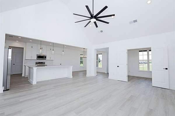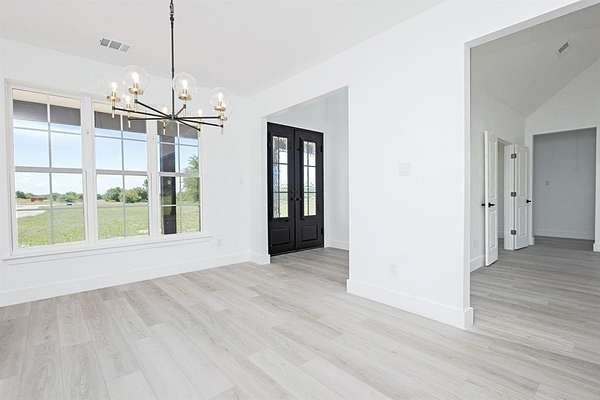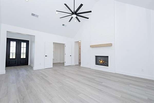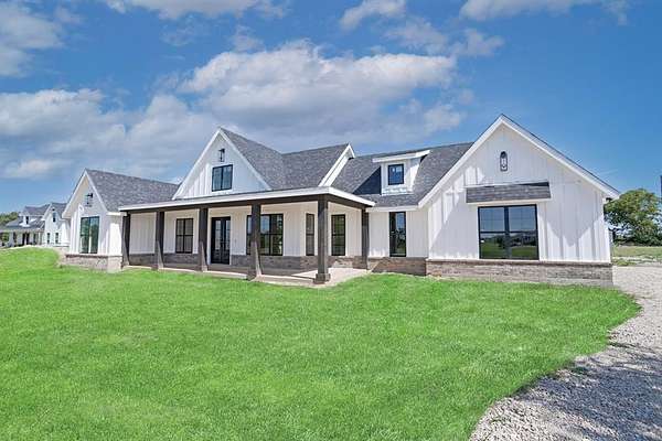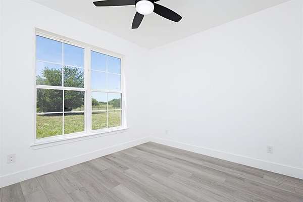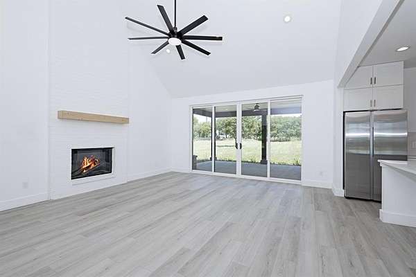 Modern, brand new home on 2 acres of land! Double Iron black doors at front entrance with Double-Pane 100% Tempered Glass leads to an open floor plan with large windows and doors combined with 17' vaulted ceilings gives a very light feel! Plumbing, appliances, air conditioning systems, roof, and more are all new, offering peace of mind with warranties on new construction electrical and air conditioning! The kitchen features custom cabinets with Quartz counter tops and matching back splash. An island in the kitchen leads into a living room that features an electric fireplace with remote control. You can find Soho Gloss White Herringbone tile in baths. Enter the mud room from the garage and leave your jacket on the built in cabinets before taking your groceries to the walk-in pantry. Waterproof and Durable Mohawk Vinyl wood plank flooring throughout. Catch a breeze under the ceiling fans that are throughout, including the back patio. Relax in the free standing tub or in the custom frame-less shower glass in the master bath. Store all of the extras in the full attic. Gravel drive leads you through the mature grass and shrubs to a 2 car garage with custom doors by Custom door by Tolbert with storage and parking. 45 minutes to Fort Worth or an hour drive to Dallas. Enjoy the sunsets on the front or back porches!
