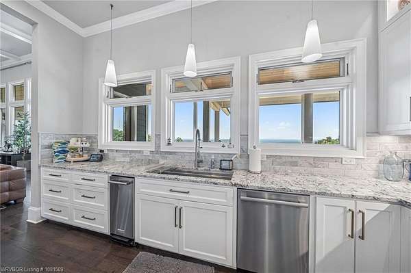 Proof of funds or pre approval from buyers bank required before showing. Listing agent to be present at all showings. Four year old custom built property with an amazing view. Upstairs has 1600 square feet of open heated and cooled space that can be easily customized for a future owners needs. Exterior of the property is constructed of Hardie Board with a 30 Year warranty. Top two lots have a Rain Flow sprinkler system. 4th car garage is currently being used as a workshop. Large pantry is also a safe room. The home has 16' and 11.5' and 10' ceilings. Solar panels provide very reasonable utilities (See attached average utilities) Granite surfaces throughout the home, crown molding, coffered ceilings, custom cabinets and built ins, custom high end bath fixtures, commercial grade appliances, automatic drapes, upgraded lighting package, smart home and Lutron power system, heated floors in master suite and laundry room, instant hot water heater, large rear porch has tongue and groove ceiling, TV stand integrated into slab to drop into cabinet and lower into slab. See attachments for additional amenities, floor plan and average utilities. Top two lots do not have a POA and other lot is in River Overlook and has a POA with yearly dues of 400.00