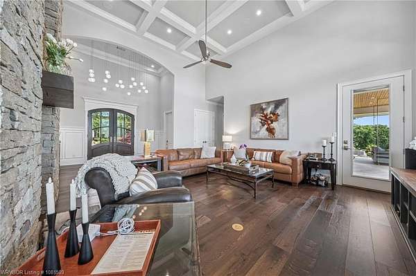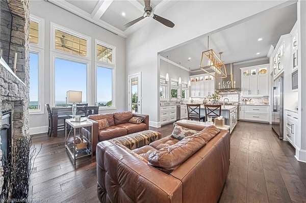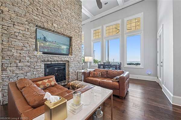 Priced below appraisal. Proof of funds or pre approval from buyers bank required before showing. Listing agent to be present at all showings. Four year old custom built property with an amazing view. Upstairs has 1600 square feet of open heated and cooled space that can be easily customized for a future owners needs. Exterior of the property is constructed of Hardie Board with a 30 Year warranty. Top two lots have a Rain Flow sprinkler system. 4th car garage is currently being used as a workshop. Large pantry is also a safe room. The home has 16' and 11.5' and 10' ceilings. Solar panels provide very reasonable utilities (See attached average utilities) Granite surfaces throughout the home, crown molding, coffered ceilings, custom cabinets and built ins, custom high end bath fixtures, commercial grade appliances, automatic drapes, upgraded lighting package, smart home and Lutron power system, heated floors in master suite and laundry room, instant hot water heater, large rear porch has tongue and groove ceiling, TV stand integrated into slab to drop into cabinet and lower into slab. See attachments for additional amenities, floor plan and average utilities. Top two lots do not have a POA and other lot is in River Overlook and has a POA with yearly dues of 400.00