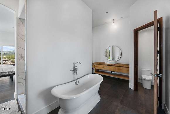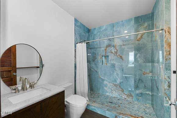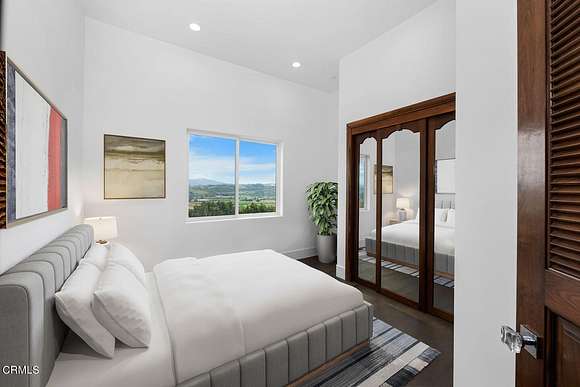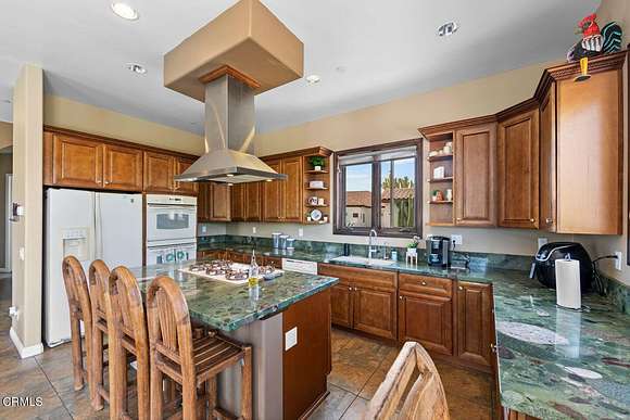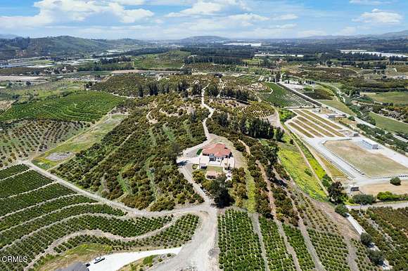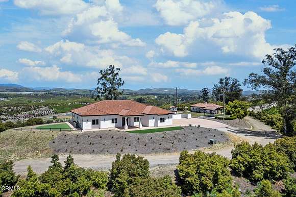 Welcome to 5927 St. Maarten Dr. in Moorpark, a custom-built sanctuary nestled atop nearly 24 sprawling acres in Ventura County's avocado country. This magnificent 4BR/6BTH single-story estate offers 4,610 sf of luxury living space, with an additional 1,800 sf under roof. The oversize patio with BBQ area and two outside restrooms was designed for large gatherings. For guests or extended family, a detached 1,200 sf GUEST HOUSE awaits, offering 2BR/2BTH and its own private retreat. Boasting panoramic views of lush orchards and the majestic Los Padres and Santa Monica Mountains, this hilltop haven offers unparalleled tranquility just minutes away from Moorpark and Camarillo.Upon entering the main residence, floor-to-ceiling windows invite the breathtaking landscape indoors, bathing the home in natural light and providing a seamless connection to the serene surroundings. The open floorplan effortlessly blends functionality with elegance, featuring a spacious kitchen and family room adorned with 12ft ceilings and sleek porcelain floors.The gourmet kitchen is a chef's dream, equipped with a generous center island, 60 inch range, and a Sub-Zero refrigerator, perfect for culinary enthusiasts and entertaining alike. Smart home technology elevates the living experience, with amenities such as an owned solar system, electric charging station, surround sound, and closed-circuit security, ensuring comfort, convenience, and peace of mind.Indulge in the ultimate retreat within the primary suite. This haven of relaxation boasts floor-to-ceiling windows that frame captivating views, creating an oasis of serenity. A generously-sized lounge area offers the perfect spot to unwind and take in the beauty of the surrounding landscape. Step into the luxurious marble walk-in shower or soak in the claw tube for a spa-like experience that rejuvenates the senses. His and her sinks, adorned with exotic Bolivian marblewood counters, provide both functionality and elegance. Separate water closets ensure privacy and convenience, while the oversized walk-in closet offers ample storage space for the most discerning wardrobe.Luxurious details abound throughout the home, including 12-foot ceilings, LED lighting, and energy-efficient features such as dual-zoned AC, energy recovery ventilation, and fire sprinklers. Outside, the property offers approximately 18 acres of thriving Haas avocado trees, with additional acreage ideal for equestrian or other agricultural pursuits.