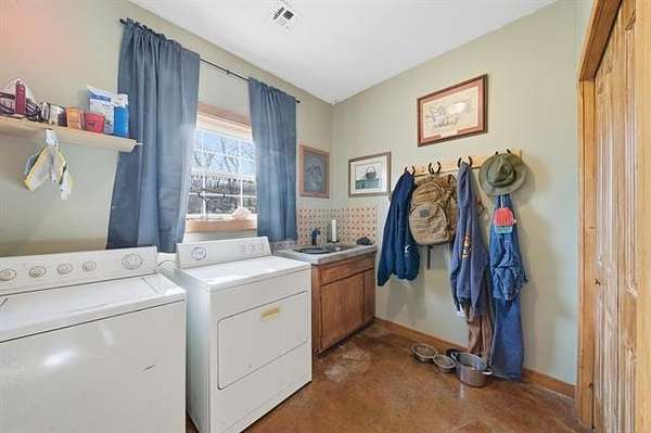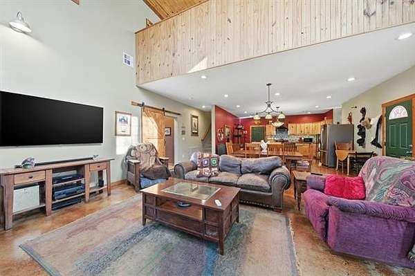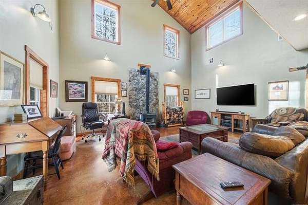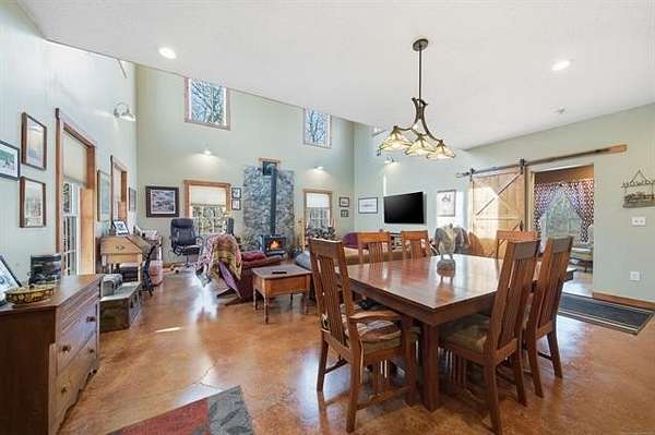 Spacious Barndominium on 10 Acres Near Lake Hudson! Built in 2016, this well-designed 1.5 story, 3-bedroom, 2.5-bath barndominium sits on 10 +/- scenic acres with mature trees and a peaceful, wooded setting in Mayes County. This spacious home features vaulted ceiling, two living areas, and a cozy wood-burning stove-ideal for both everyday living and entertaining. The open concept kitchen includes concrete countertops and expansive central gathering island, ample cabinetry, and all appliances stay. Enjoy outdoor living from the covered porch while taking in the quiet country surroundings. A durable metal roof, slab foundation, vinyl windows, gutters, and aluminum exterior provide long-lasting, low-maintenance appeal. Additional features include an attached 2-car garage with 3 roll up OH doors and tandem space. This property is surrounded with barbed wire fencing and offers plenty of room recreational use, or future expansion. Located in the Adair School District with no HOA and just a short drive to launch on Lake Hudson, this barndominium offers the perfect blend of rural privacy and outdoor recreation, with quick convenient access to Pryor and surrounding areas. Schedule your private showing today.