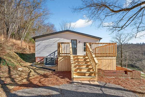 Newly renovated home that truly feels brand new, with everything on the inside completely updated. Improvements include new flooring, paint, windows, cabinets, granite countertops, fixtures, and more, offering a fresh, modern interior throughout. Enjoy outdoor living on a large deck with great views, all situated on five acres at the end of a dead-end road for privacy and quiet. The home is on a permanent foundation and has been detitled, adding long-term value and peace of mind. Additional features include a storm shelter and a block storage building on site. A move-in-ready property with space, privacy, and quality upgrades inside and out.