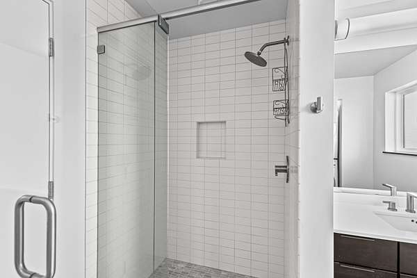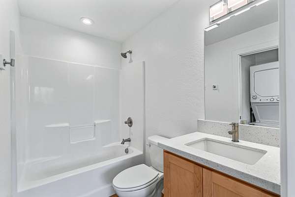 - Breakfast Bar, Built-In Features, Dual Flush Toilet(s), Granite Counters, Linen Closet, Open Floorplan, Primary Downstairs, Shower/Tub Combo, Solid Surface Counters, Vaulted Ceiling(s)