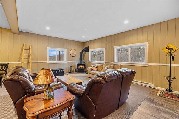 Spacious cabin in a gated community with a small town neighborhood feel. Situated on a lovely lot covered in Pine and Aspen, this three bedroom, three bath cabin has plenty of space to live and play. An open great room on the main level includes a dining space and large, well designed kitchen with plenty of counter space and storage, and a kitchen island with extra seating. This is an ideal space for family time or entertaining friends. A primary suite with a full bath, two additional bedrooms, a second full bath, and a convenient laundry room complete the space. A covered deck off the great room affords stunning views of mountain peaks and national forest The lower level opens up from the outside to a mudroom which leads to a huge family space with a wood stove. The lower level also has a bunk room and 3/4 bath. This space would be perfect as a game room, family room, or even a short term rental. The rolling property is stunning, and an oversized shed will easily store all your toys and extras. The lot backs directly up to national forest for hiking, biking, bird watching, and viewing all the native wildlife. There are several other forest access points throughout the community. An easy commute to Fairplay, Buena Vista, or Breckenridge, and close to excellent schools, this is a great full time residence. Community amenities include a central water system, a Clubhouse, tennis/recreation courts, 7 ponds, road snow plowing, a trash compactor, and numerous community activities throughout the year. Whether you are looking for a full time home, a vacation getaway, or an investment prospect, this is a perfect cabin.