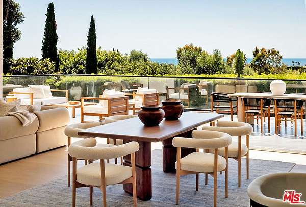 Discover a Malibu New Construction Ocean View estate minutes from Point Dume and set on over 2 acres of spectacular lush landscape and a vineyard. At the end of a private cul de sac, this exceptional Modern Organic luxury estate is a serene compound with commanding views of the Pacific Ocean, rolling vineyards, and the Santa Monica Mountains. From the moment you arrive, the estate makes a statement with its gated and circular motor court and elegant approach that sets the tone for the sophistication within. Soaring ceilings, walls of glass, and expansive open living spaces seamlessly blur the lines between indoors and out, while over 3,000 square feet of wraparound ocean view decks invite you to take in the ever-changing ocean and Tuscany inspired 1 acre vineyard vistas. Every detail of the estate has been carefully curated with the highest level of craftsmanship and design. Fleetwood windows and doors frame dramatic sight lines, while custom white oak built-ins, handmade zellige tiles, and striking stone selections such as Taj Mahal quartzite and leathered granite create a refined, organic palette throughout. The open-concept living area flows effortlessly into the chef's kitchen featuring a 12-foot island clad in leathered stone, top-of-the-line Miele appliances, lime-washed walls, and a large walk-in pantry. The thoughtful floor plan offers five bedrooms and five bathrooms, including two bedrooms on the main level. Upstairs, the primary suite is a true sanctuary with dual closets, a private sitting room, and a spa-inspired bath dressed in Taj Mahal quartzite. The upper level also includes two additional bedrooms and a spacious family lounge designed for relaxed living. An elevator connects both levels with ease. World-class amenities elevate the lifestyle experience, including a state-of-the-art home theater, wine cellar, stylish bar and lounge, and an innovative indoor/outdoor gym that makes fitness a daily indulgence. The outdoor spaces are equally captivating. Resort-like grounds feature a sparkling pool and spa, built-in fire pit, custom barbecue, and an expansive grassy pad of nearly 4,000 square feet with a golf practice area ideal for entertaining, recreation, or simply soaking in the tranquility of your surroundings. The property has been designed for convenience and security, with a four-car garage, video intercom system, and ample additional parking for over 10 vehicles, including space for an Airstream or boat via private side yard access. This new construction secluded estate by architect Itay Mane represents a rare opportunity to own an ocean view retreat in Malibu, complete with a uniquely picturesque vineyard, perfectly positioned near Point Dume and Malibu beachside conveniences.