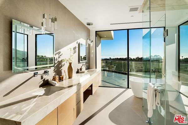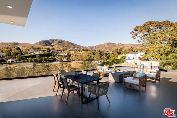 Perched above the coastline with panoramic Pacific Ocean views, this newly constructed Malibu modern estate sits on more than two acres of landscaped grounds and a picturesque vineyard near Point Dume. At the end of a private cul-de-sac, the estate unfolds as a tranquil retreat surrounded by rolling vineyard rows and sweeping views of the Pacific Ocean and Santa Monica Mountains. A gated entrance leads to a circular motor court and elegant architectural approach that immediately establishes the home's sense of scale, privacy, and design pedigree. Inside, soaring ceilings and walls of glass flood the magnificent interiors with natural light while framing dramatic ocean and landscape views from nearly every major living space. Expansive open-concept living areas flow effortlessly to more than 3,000 square feet of wraparound ocean-view decks, creating a seamless connection between indoor and outdoor living. The home's material palette reflects thoughtful craftsmanship and a warm modern organic aesthetic where no expense was spared in finishes and materials. Fleetwood windows and doors create clean architectural lines, while custom white oak built-ins, handmade zellige tiles, lime-washed walls, and striking stone surfaces including Taj Mahal quartzite and leathered granite add texture and refinement throughout. The minimalist modern kitchen serves as the centerpiece of the main living area, anchored by a dramatic 12-foot leathered-stone island and equipped with top-of-the-line Miele appliances, PITT gas range built into stone, a generous walk-in pantry, and ample prep space. A wine cellar and dramatic stone clad wine bar make for intimate or large scale entertaining, The residence offers five bedrooms and five bathrooms all ensuite with a highly functional layout, including two bedrooms on the main level ideal for guests, office use, or multigenerational living. Upstairs, the primary suite is designed as a private sanctuary featuring dual closets, a sitting room, and a spa-inspired bathroom clad in Taj Mahal quartzite. Two additional bedrooms and a spacious family room complete the upper level, which is easily accessed via a private elevator connecting both floors. Expansive deck spaces wrap around all bedrooms upstairs and lead to an entertainment deck with an outdoor bar and lounge, capturing both ocean mountain views. Luxury amenities include an indoor-outdoor gym, a a state-of-the-art home theater, a glamorous powder room, and a bonus storage space. The beautiful outdoor spaces feel like a private resort. A sparkling pool and spa overlook the surrounding landscape, complemented by a custom barbecue area, built-in fire pit, and approximately 4,000-square-foot grassy pad with a golf practice area. The vineyard adds a uniquely picturesque element rarely found in Malibu properties; a unique combination of ocean view and Tuscan inspired vistas. Designed with convenience and security in mind, the estate includes a four-car garage, extensive parking for more than ten + vehicles with private side-yard parking suitable for an Airstream, boat, or recreational vehicles. Security includes door bird gates, lutron lights, security cameras, and AV system. This secluded new-construction estate represents a rare opportunity to own a Malibu ocean-view compound with a vineyard, privacy, and architectural integrity all just minutes from Point Dume, Malibu beaches, dining, and shopping.
